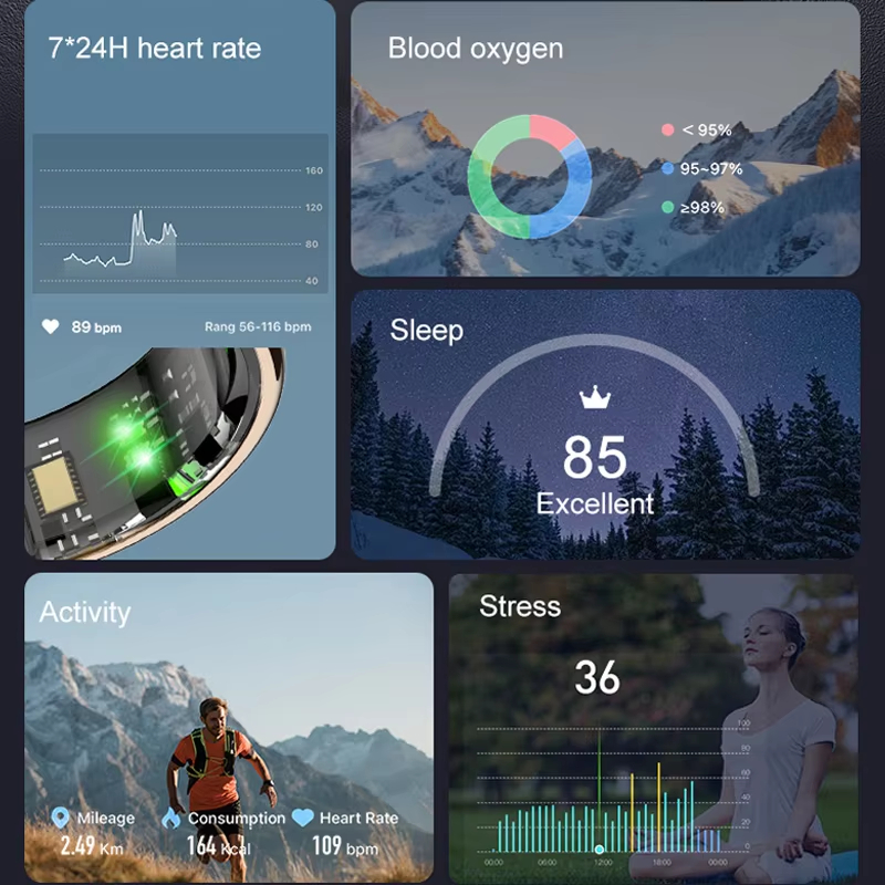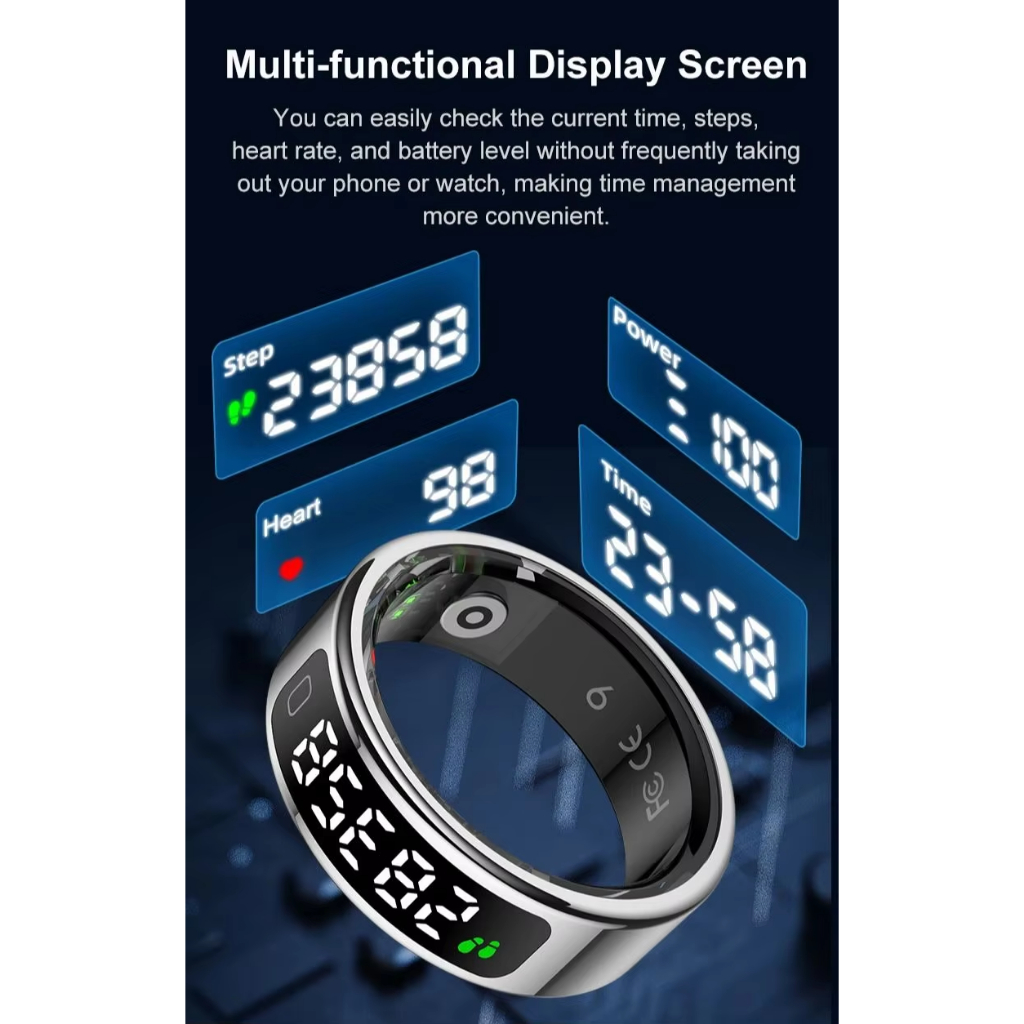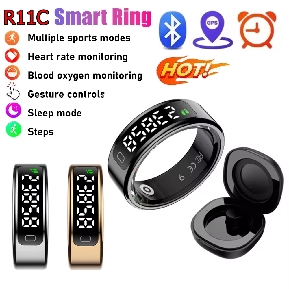 2025 ใหม่ ร11ค สมาร์ทแหวนผู้ชายผู้หญิง นํา แสดงหน้าจออัตราการเต้นหัวใจออกซิเจนในเลือดการตรวจสอบ 1ATM กันน้ําหลายโหมดกีฬา