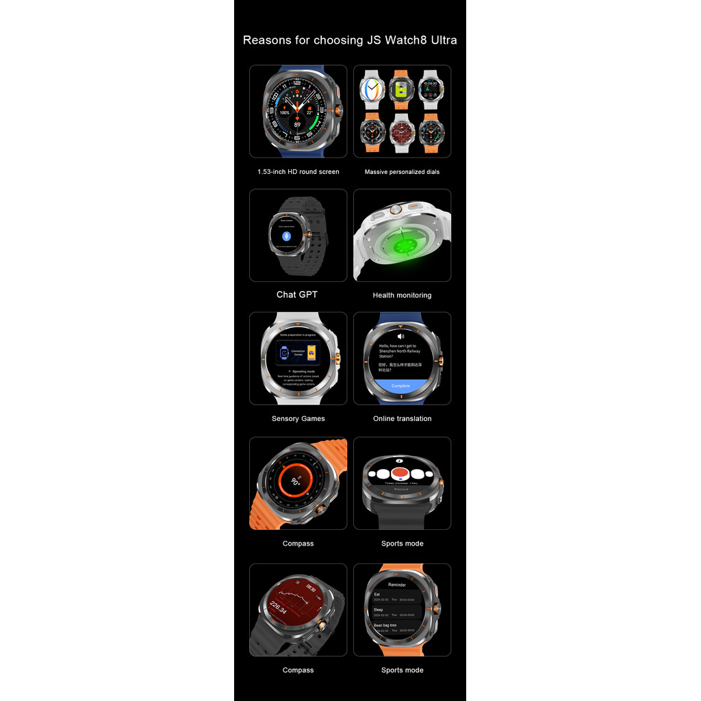 2025 ใหม่แฟชั่น Galaxy นาฬิกา 8 Ultar สมาร์ทนาฬิกาผู้ชาย 500mAh AMOLED HD หน้าจอฟิตเนส BT Call NFC GPS เข็มทิศกันน้ํา Smartwatch