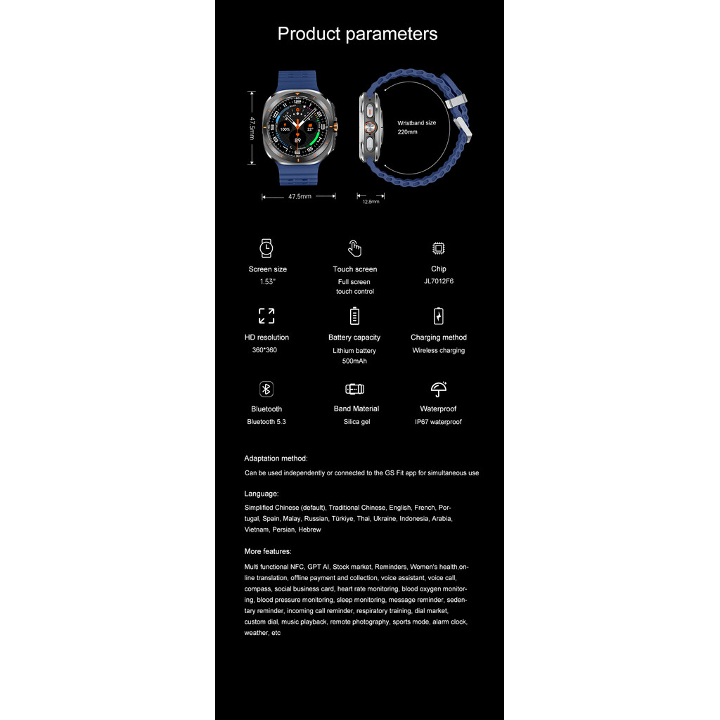 ?2025 นาฬิกาสมาร์ทใหม่ GT4pro 2.19นิ้ว นาฬิกาสปอร์ตอเนกประสงค์ IP68 เกรดกันน้ำ การตรวจจับอัตราการเต้นของหัวใจGPS NFC COD