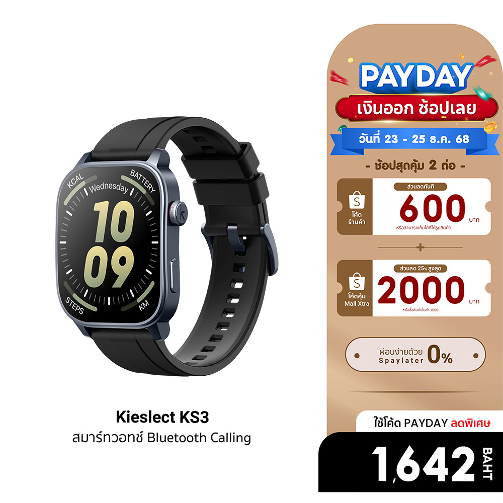 [ลดเหลือ 1642] Kieslect KS3 / KS3 Eilte สมาร์ทวอทช์ หน้าจอ AMOLED 2.1 นิ้ว รองรับ Bluetooth Calling -1Y
