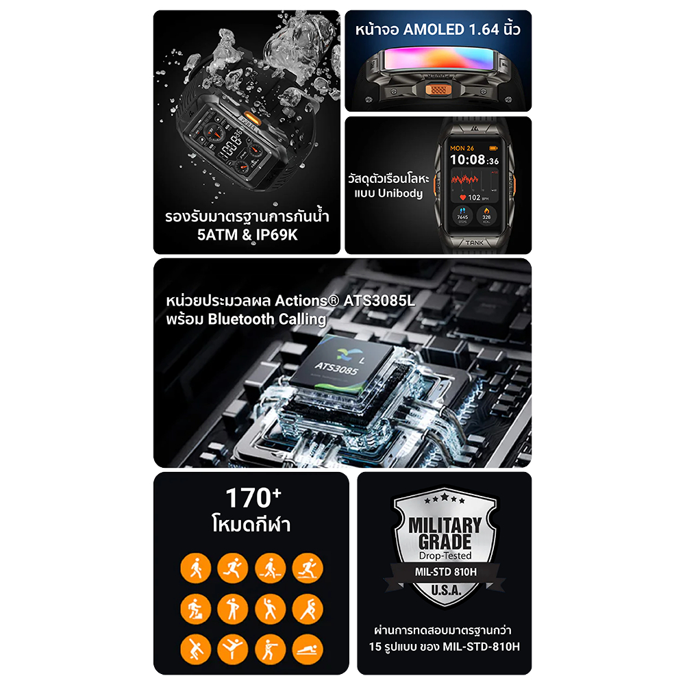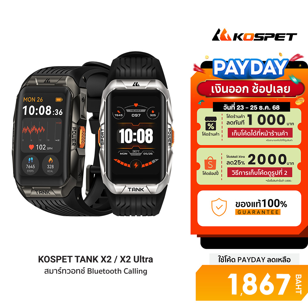 [ลดเหลือ 1867] KOSPET TANK X2 / X2 Ultra สมาร์ทวอทช์ Bluetooth Calling AMOLED 1.64 นิ้ว กันน้ำ 5 ATM + IP69K -2Y