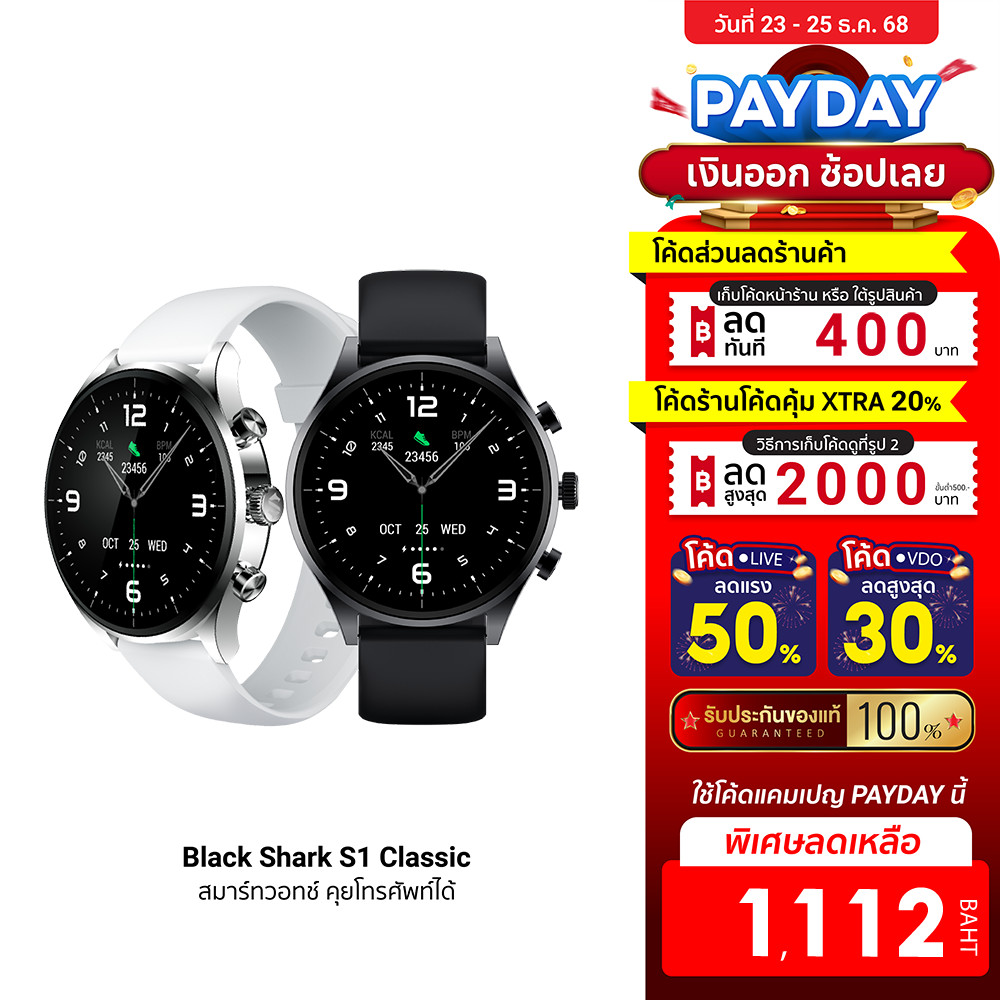 [ลดเหลือ 1112] Black Shark S1 Classic สมาร์ทวอทช์ คุยโทรศัพท์ได้ จอ AMOLED วัสดุพรีเมี่ยม ดีไซน์เรียบหรู -1Y