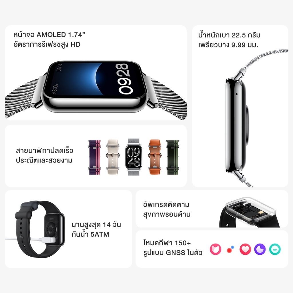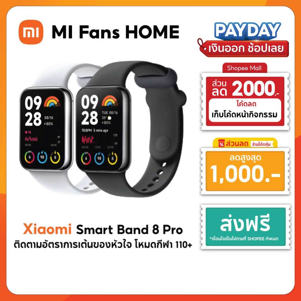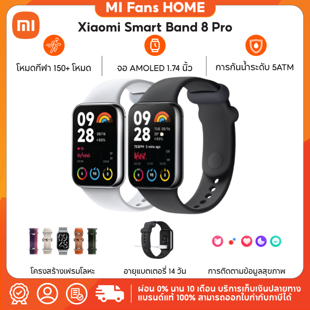 (รับประกันศูนย์ไทย 1 ปี) Xiaomi Mi Band 8 Pro จอแสดงผล 1.74″ AMOLED 60Hz การจัดการสุขภาพหลายมิต
