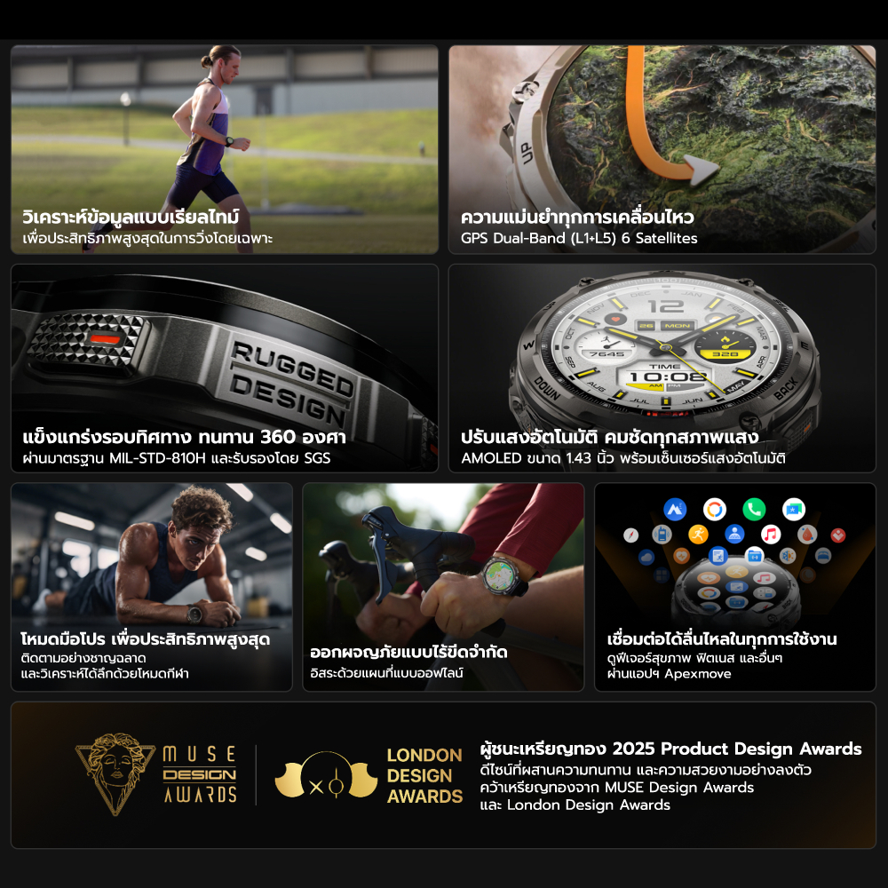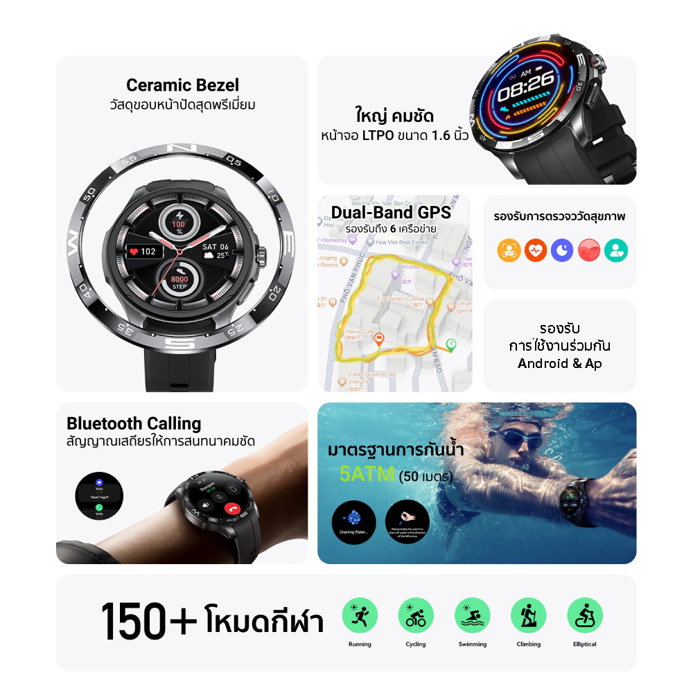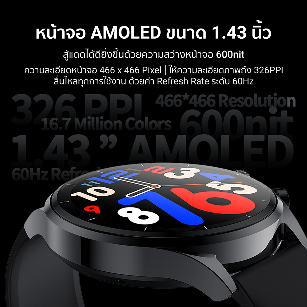 [ลดเหลือ 1492] Black Shark S3 สมาร์ทวอทช์ มี GPS รองรับการโทร Bluetooth Calling หน้าจอใหญ่ 1.43 นิ้ว กันน้ำ 5ATM -12M