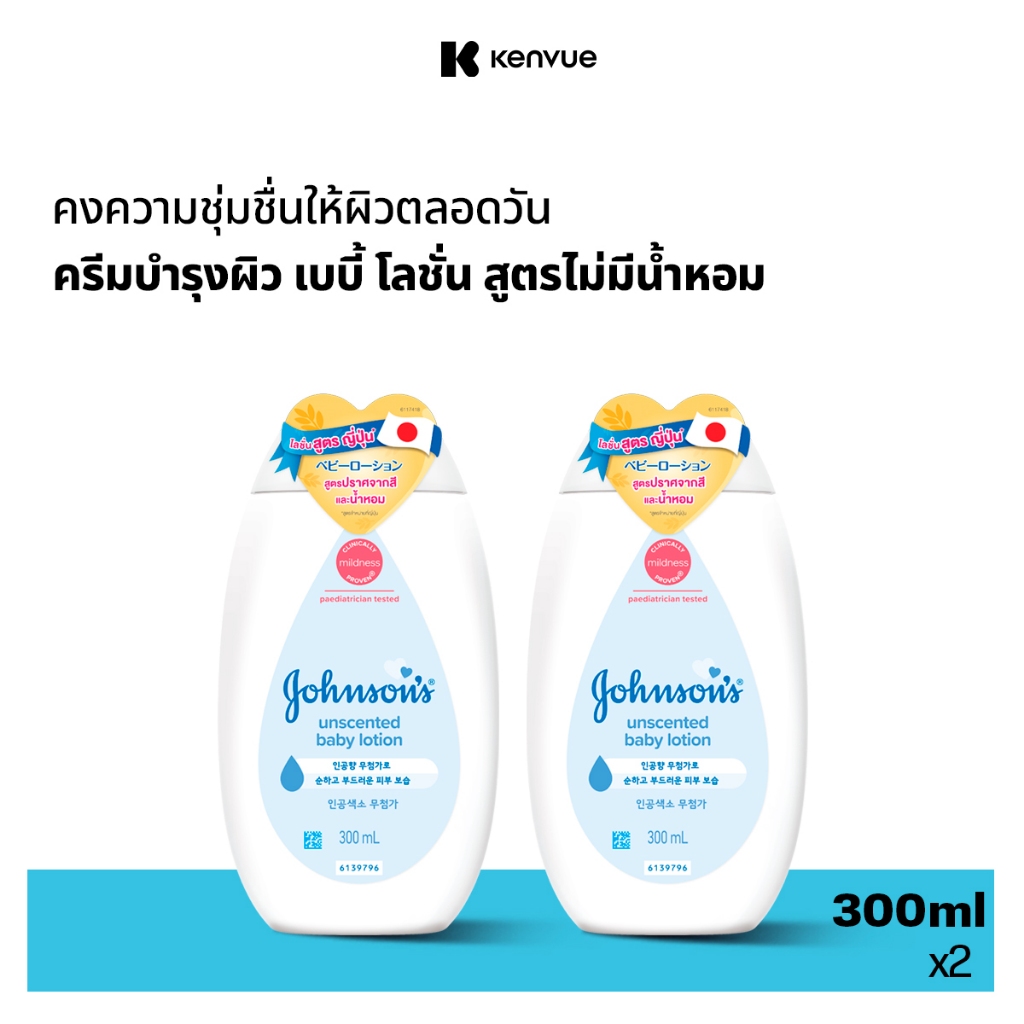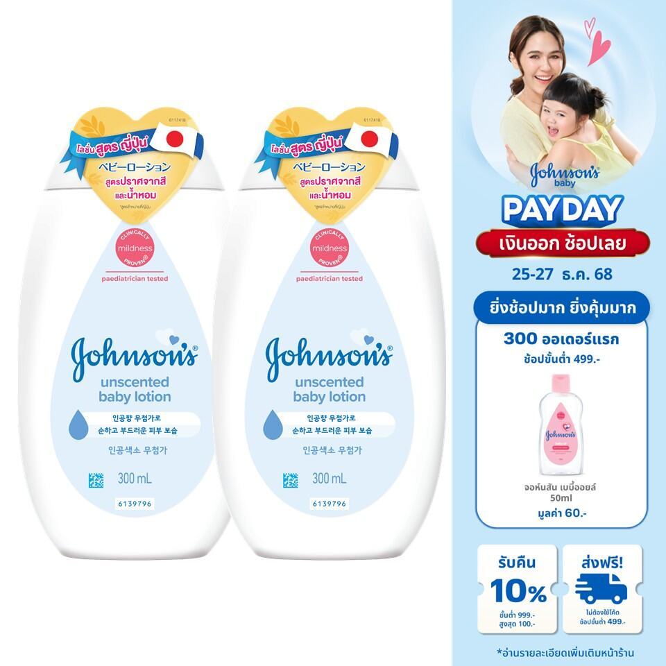 [แพ็คคู่] จอห์นสันเบบี้ ครีมบำรุงผิว ไม่มีน้ำหอม โลชั่น 300 มล. x 2 Johnson’s Baby Lotion Fragrance-free 300 ml. x 2