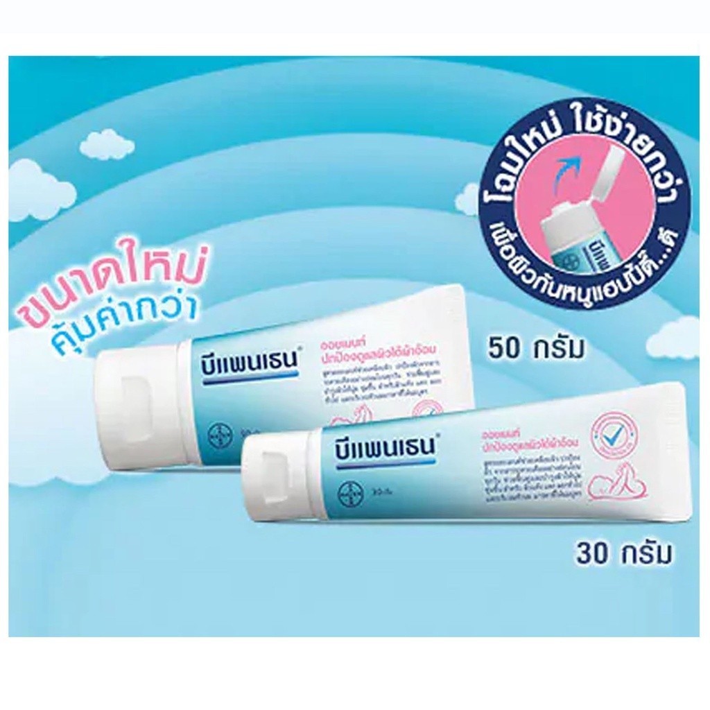Bepanthen 30 – 50 – 100 g. บีแพนเธน ออยเมนท์ ปกป้องดูแลผิวบริเวณผ้าอ้อม 1 กล่อง