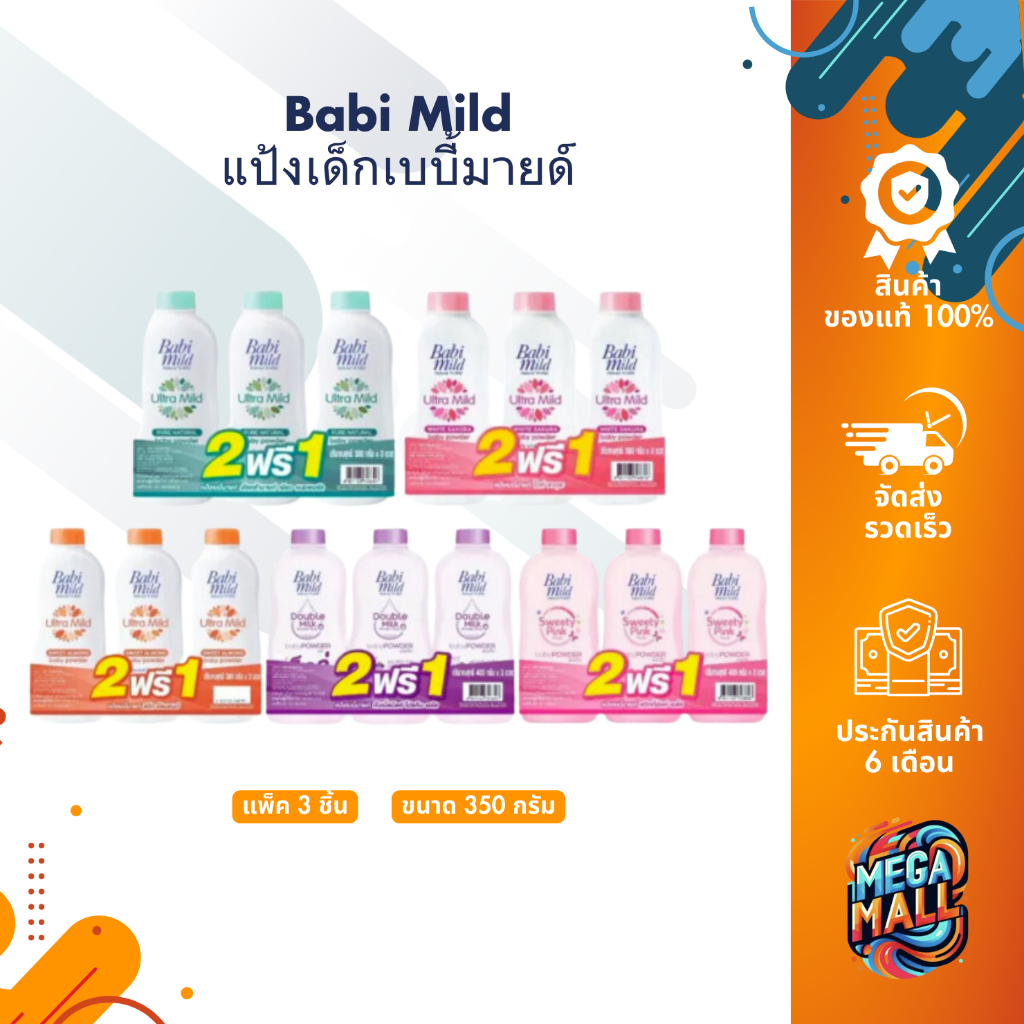 Babi Mild เบบี้ มายด์ แป้งเด็ก เบบี้มายด์ 350 กรัม (แพ็ค 3)