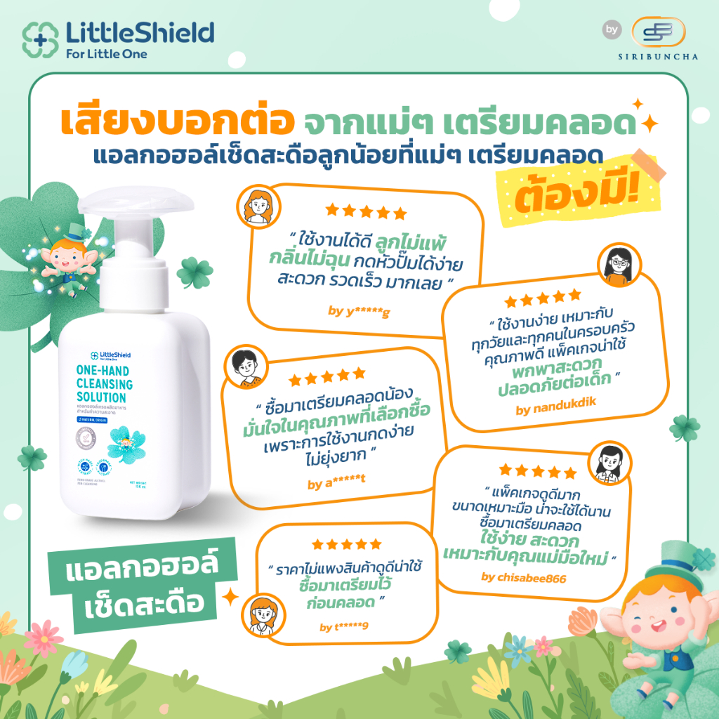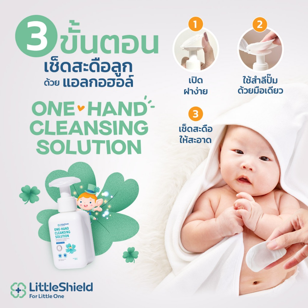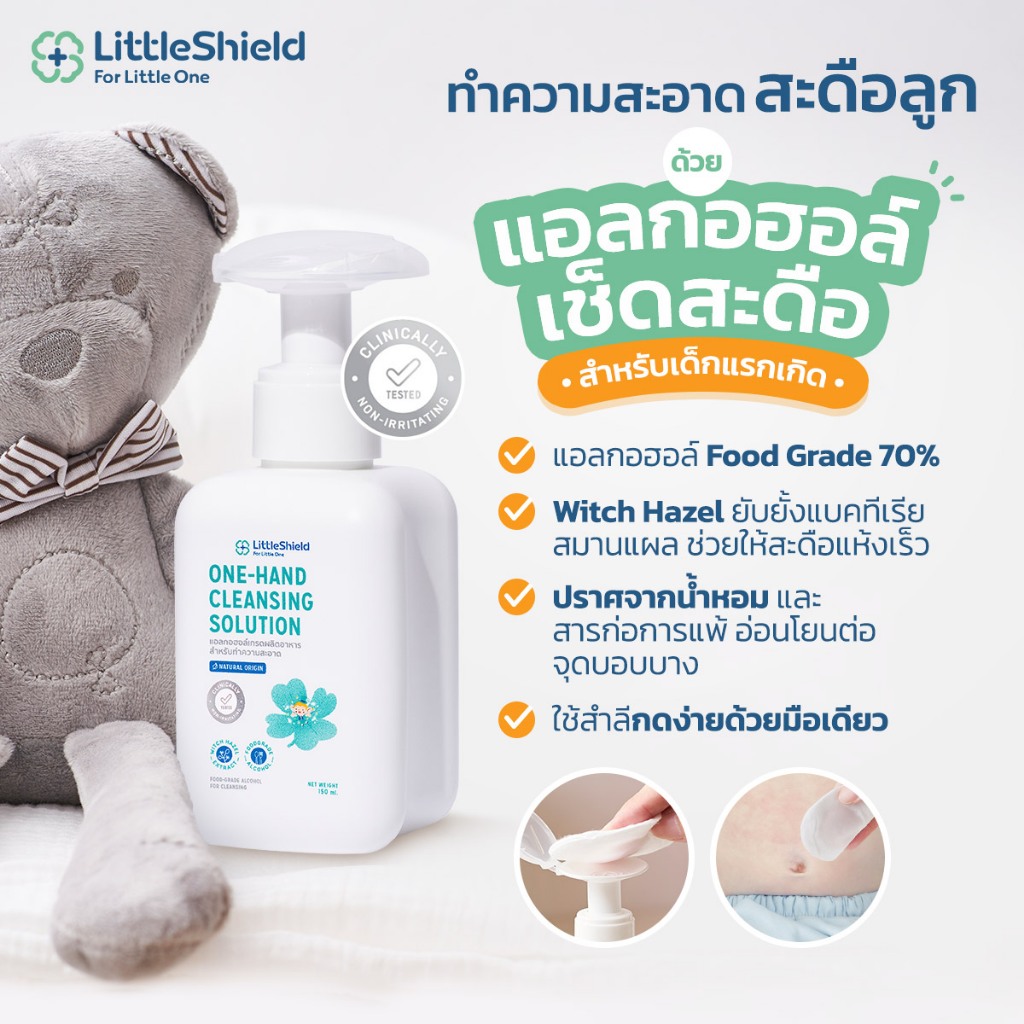 **3 ขวด** ONE-HAND CLEANSING SOLUTION – Little Shield – แอลกอฮอล์เช็ดสะดือทารกแรกเกิดแบบ Food Grade