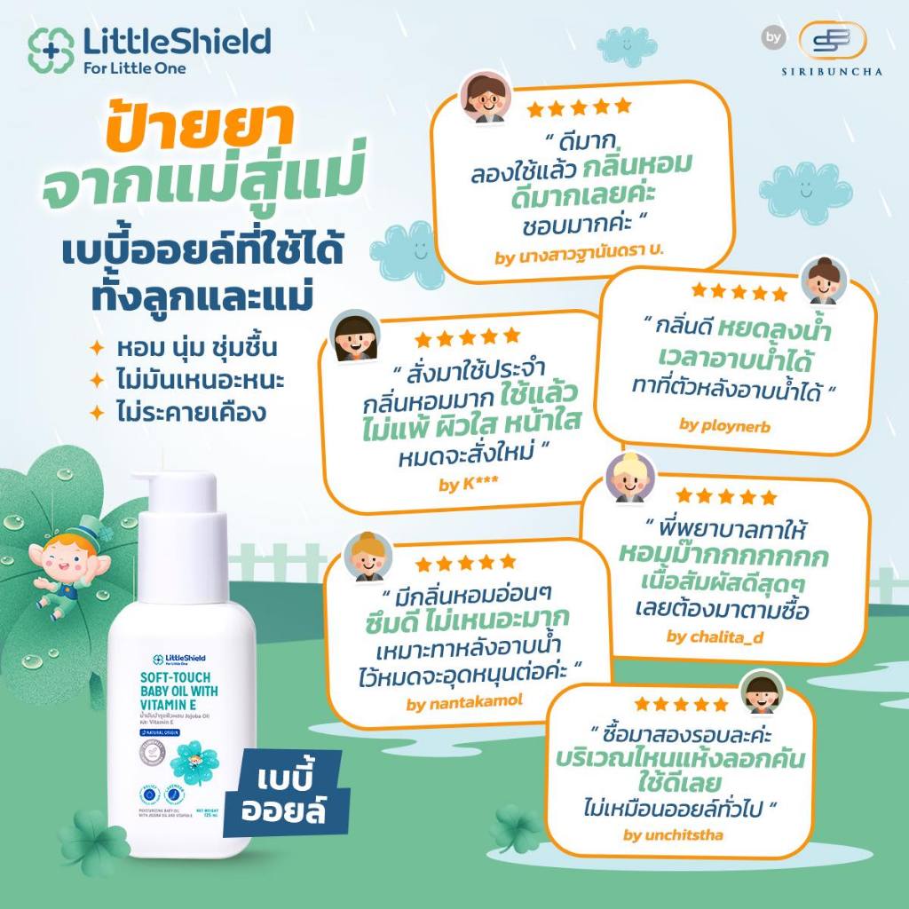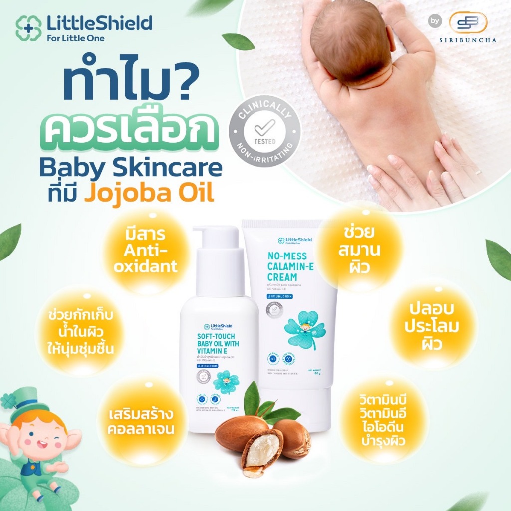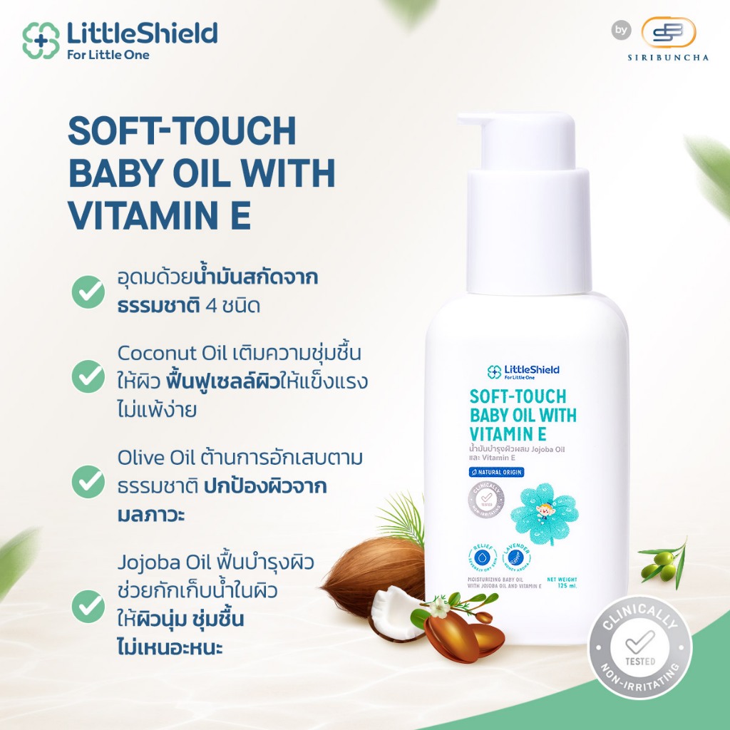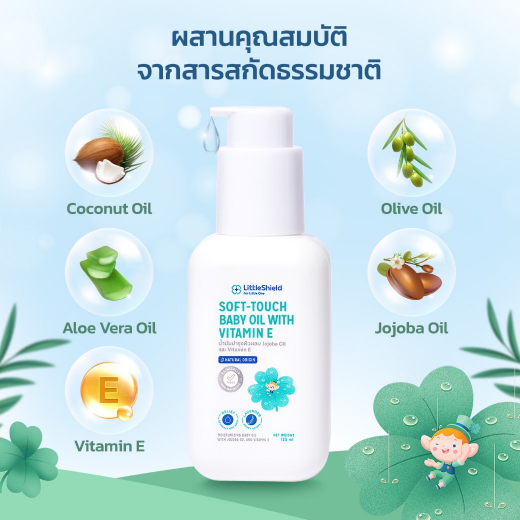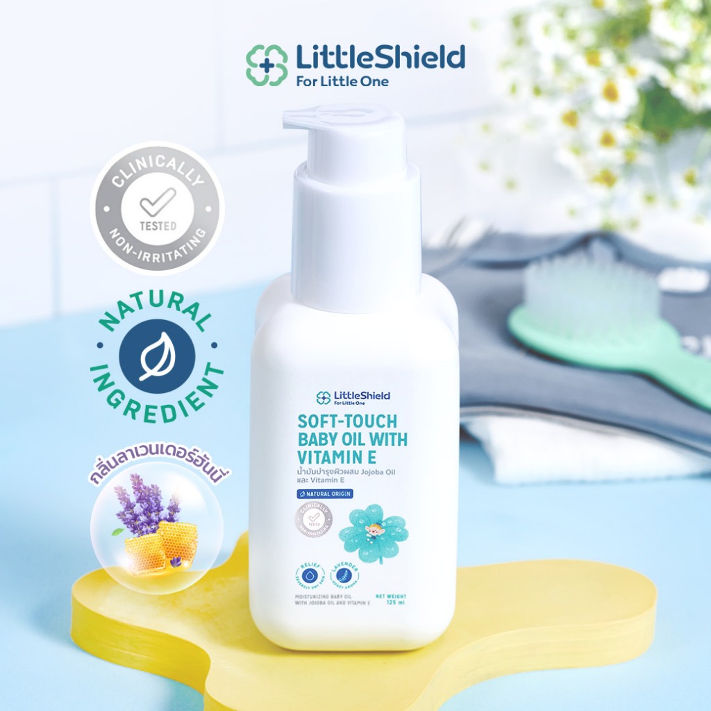 *2 ขวด* เบบี้ออยล์ สำหรับผิวแพ้ง่าย ลดผิวแห้งคัน น้ำมันสกัดจากธรรมชาติ Little Shield