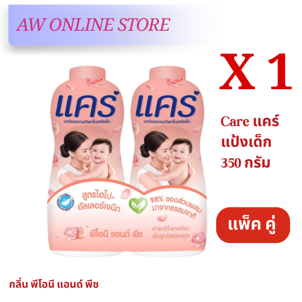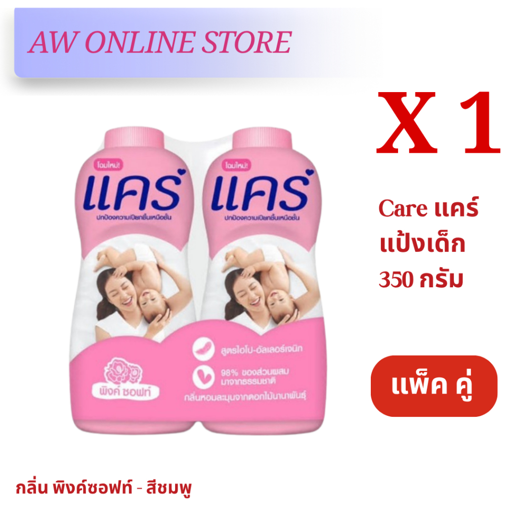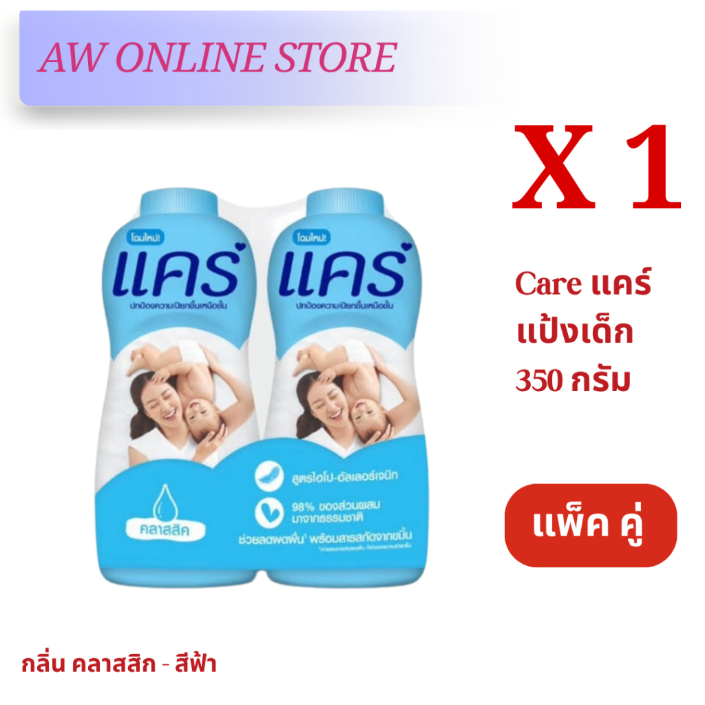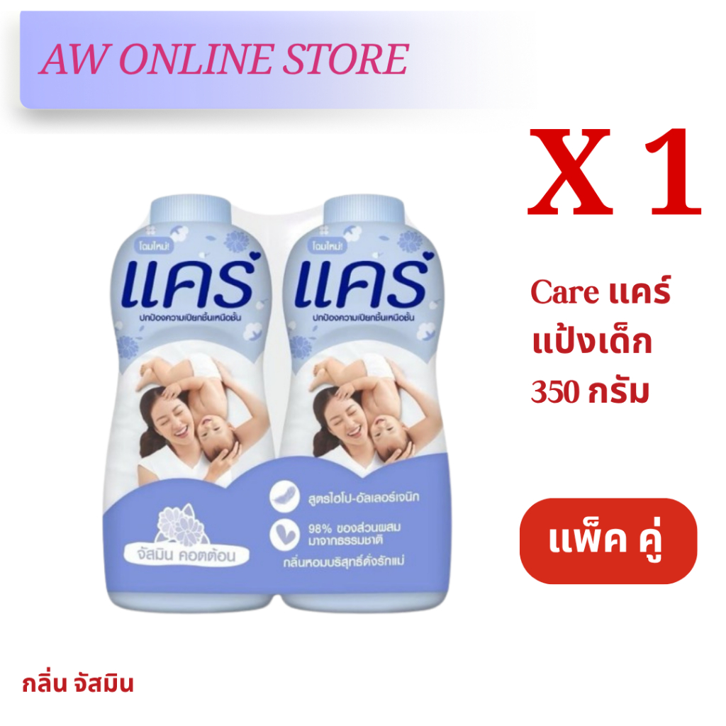 [แพ็คคู่สุดคุ้ม]แคร์แป้ง 350กรัม สูตร ไฮโป-อัลเลอร์เจนิก อ่อนโยน ไม่ระคายเคือง ลดผดผื่น หอมอ่อนละมุน