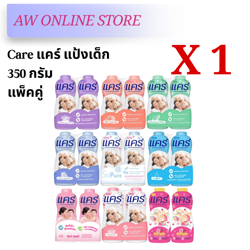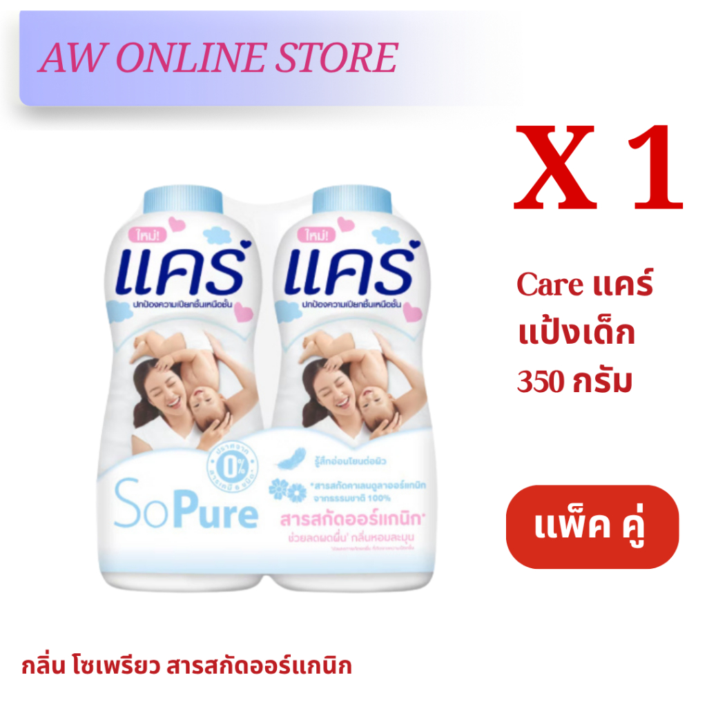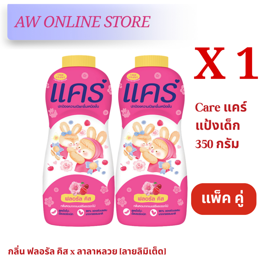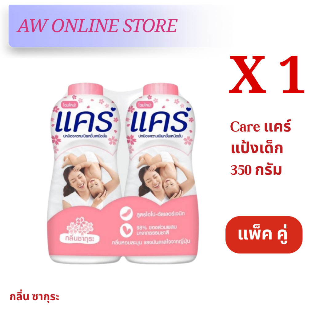 [แพ็คคู่สุดคุ้ม]แคร์แป้ง 350กรัม สูตร ไฮโป-อัลเลอร์เจนิก อ่อนโยน ไม่ระคายเคือง ลดผดผื่น หอมอ่อนละมุน