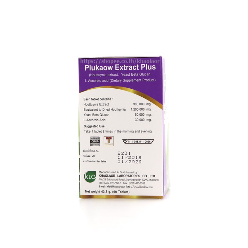 (แพ็ค 2) Khaolaor ขาวละออ พลูคาวสกัดพลัส พลูคาวสกัดผสมเบต้ากลูแคนและวิตามินซี 60 เม็ด/กล่อง