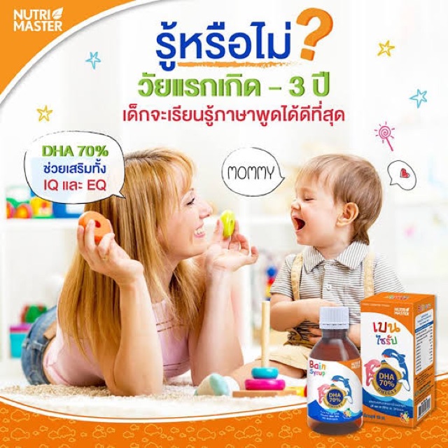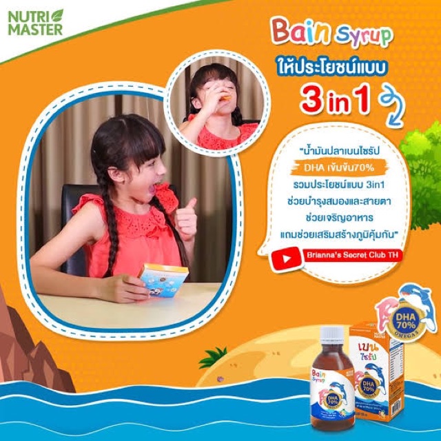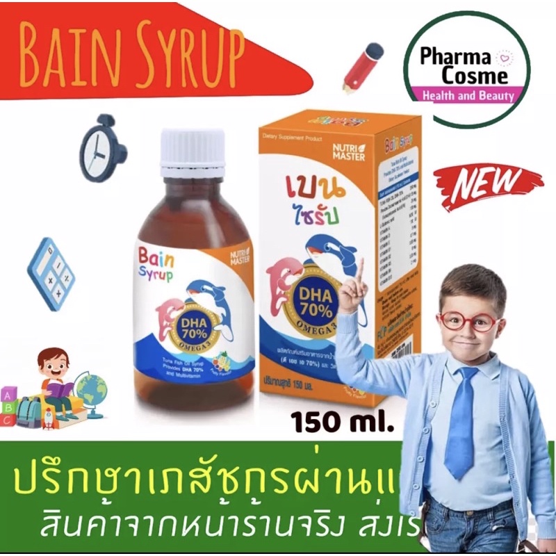 ?Nutri Master Bain Syrup 150 ml พัฒนาสมองเด็ก เบน ไซรับ Nutrimaster น้ำมันปลาเข้มข้น