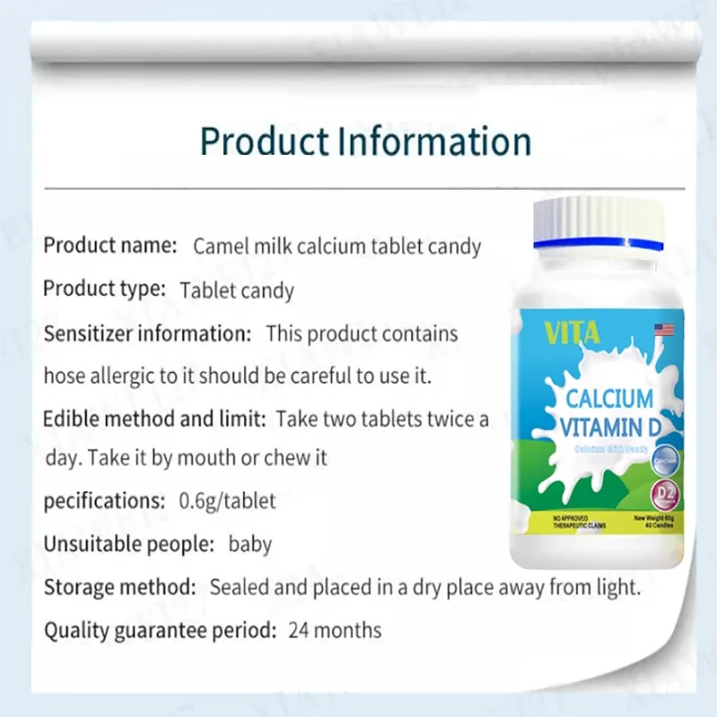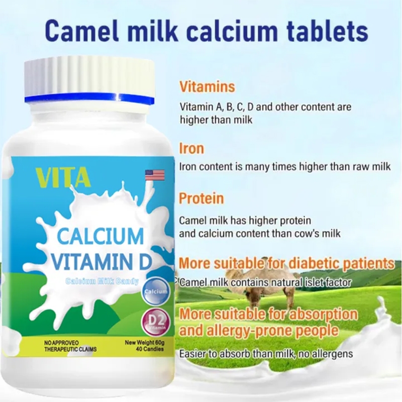 (40 เม็ด)VITA Camel นมแคลเซียมเติบโตแคลเซียมคาร์บอเนตเพิ่มความสูงแคลเซียมส่งเสริมการพัฒนาทางกายภาพ