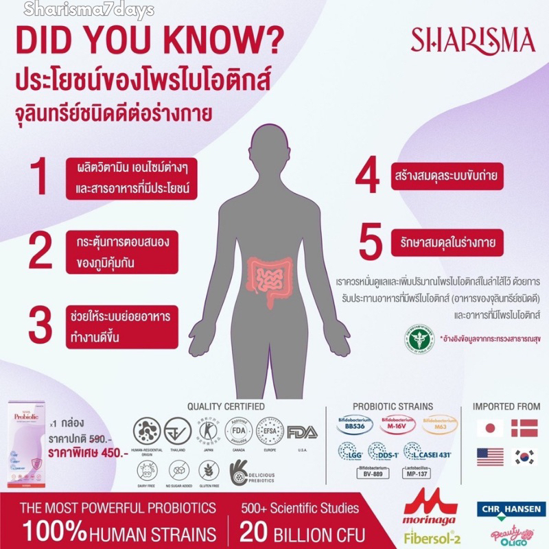 (สุดคุ้ม 1 เดือน) SharisProbiotic ช่วยเพิ่มภูมิคุ้มกัน ลดอาการภูมิแพ้ ปรับสมดุลระบบทางเดินอาหาร