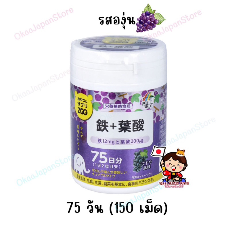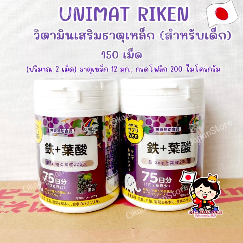 ??ญี่ปุ่น?? 150 เม็ด Unimat Riken Iron & Folic Kids Vitamin วิตามินเด็ก ธาตุเหล็และกรดโฟลิก