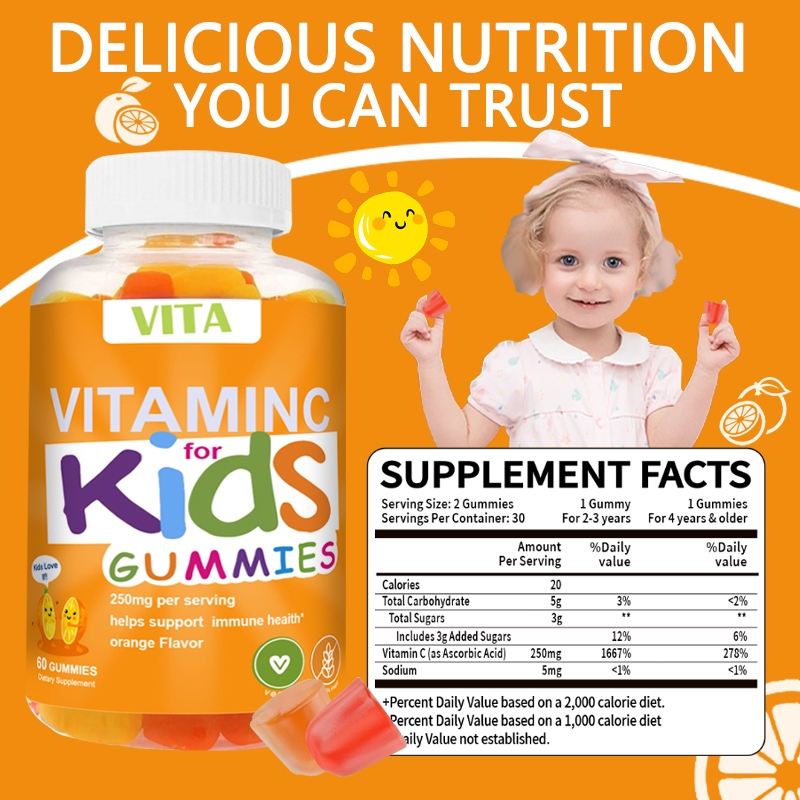 (60 เม็ด)VITA วิตามินซี Gummies วิตามินวิตามิน Gummies สำหรับเด็ก Ascorbic Acid 250 มก.