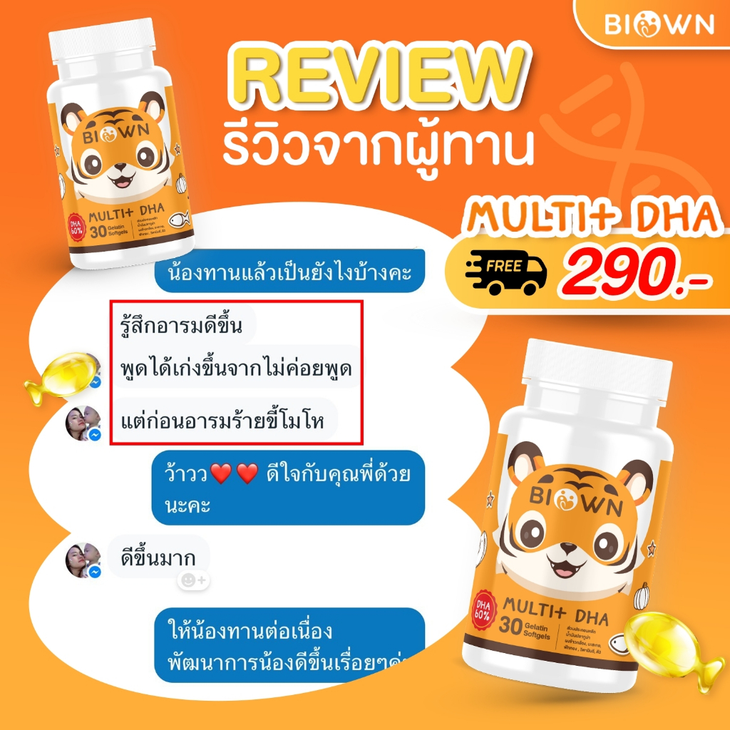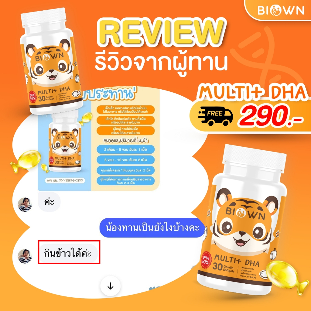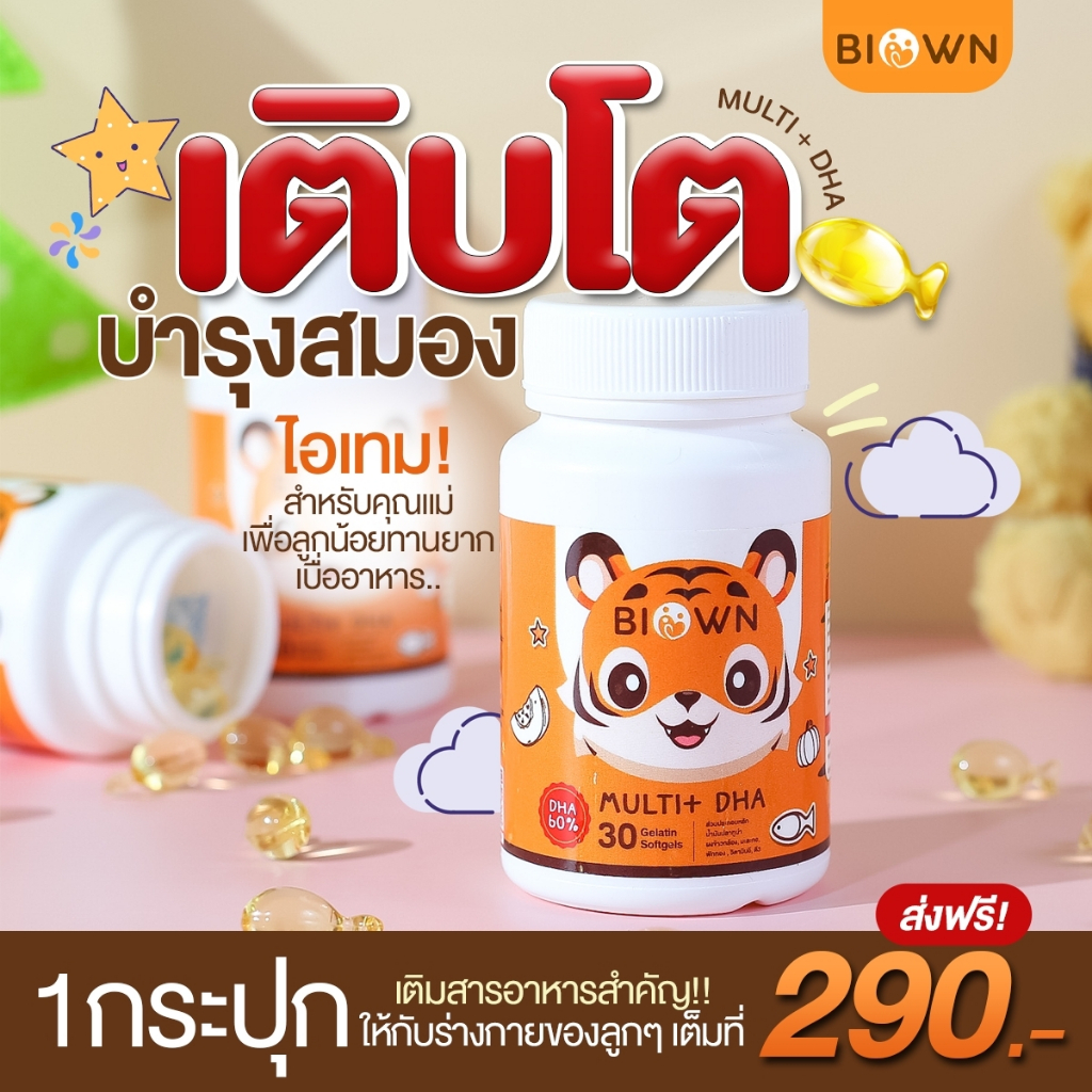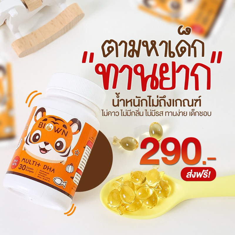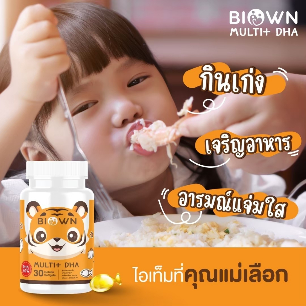 [?ในไลฟ์ลด 50% ] BIOWN Muti DHA พี่เสือ ตัวช่วยลูกเบื่ออาหารทานยาก เติมสารอาหาร พร้อมวิตามินจำเป็น