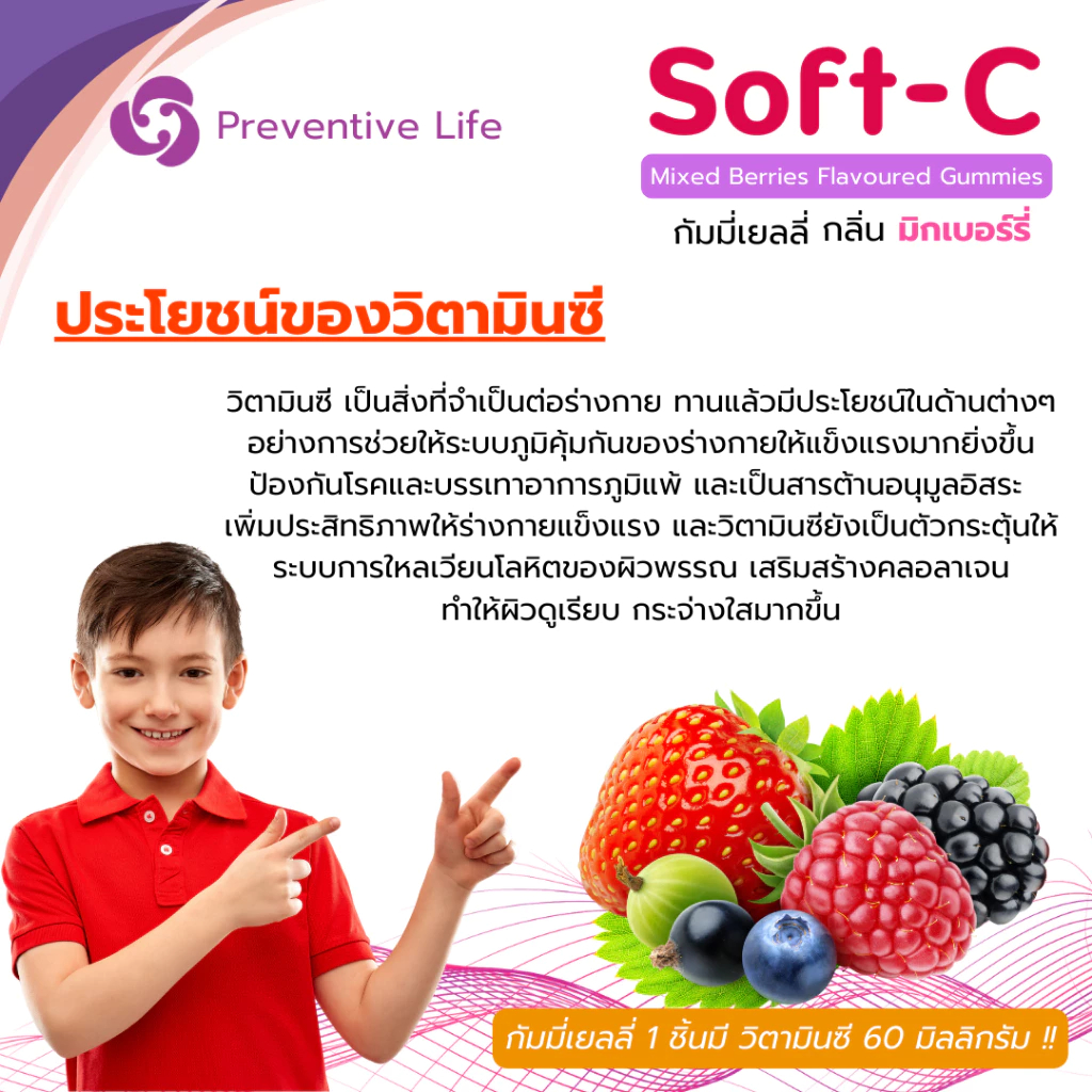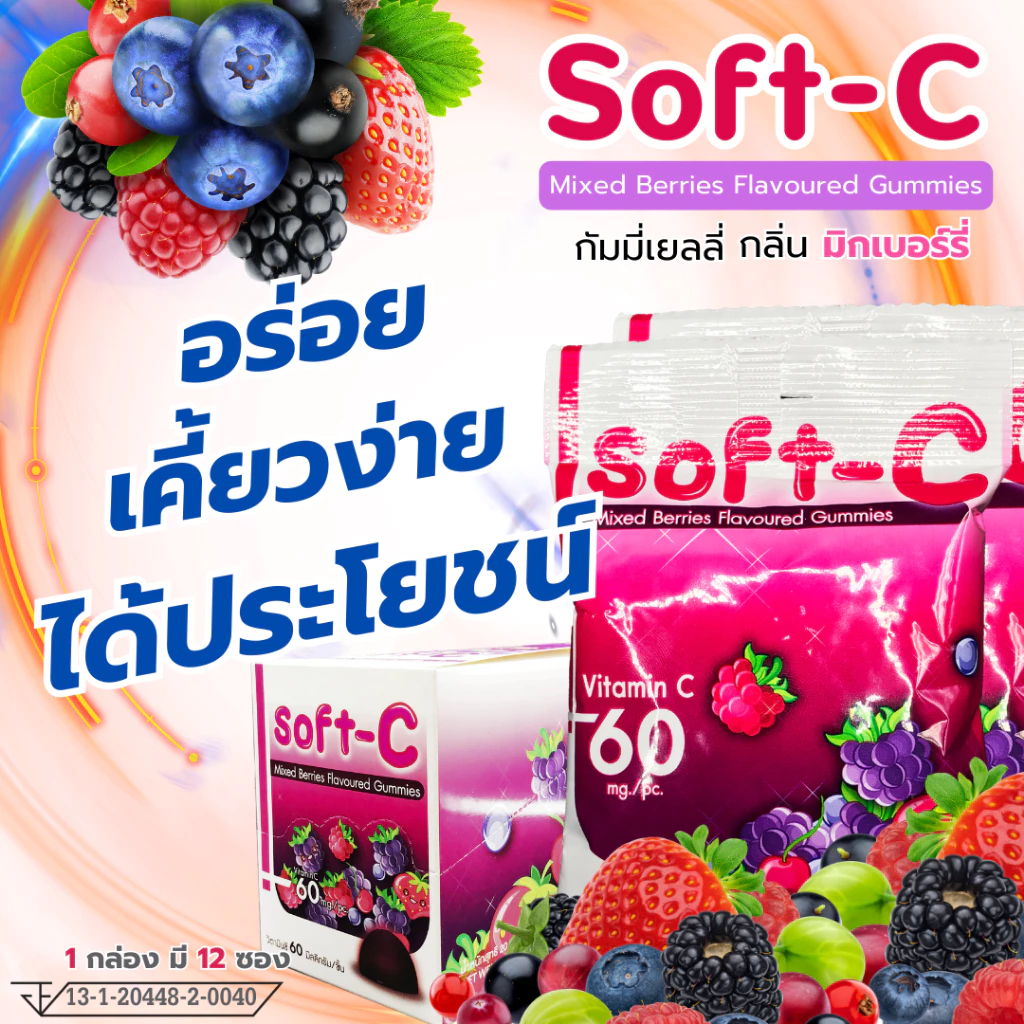 (Vit C สำหรับเด็ก) SOFT C ซอฟท์-ซี กัมมี่ส์ วิตามิน-ซี ผสมน้ำเบอร์รี่แท้ // Soft-C