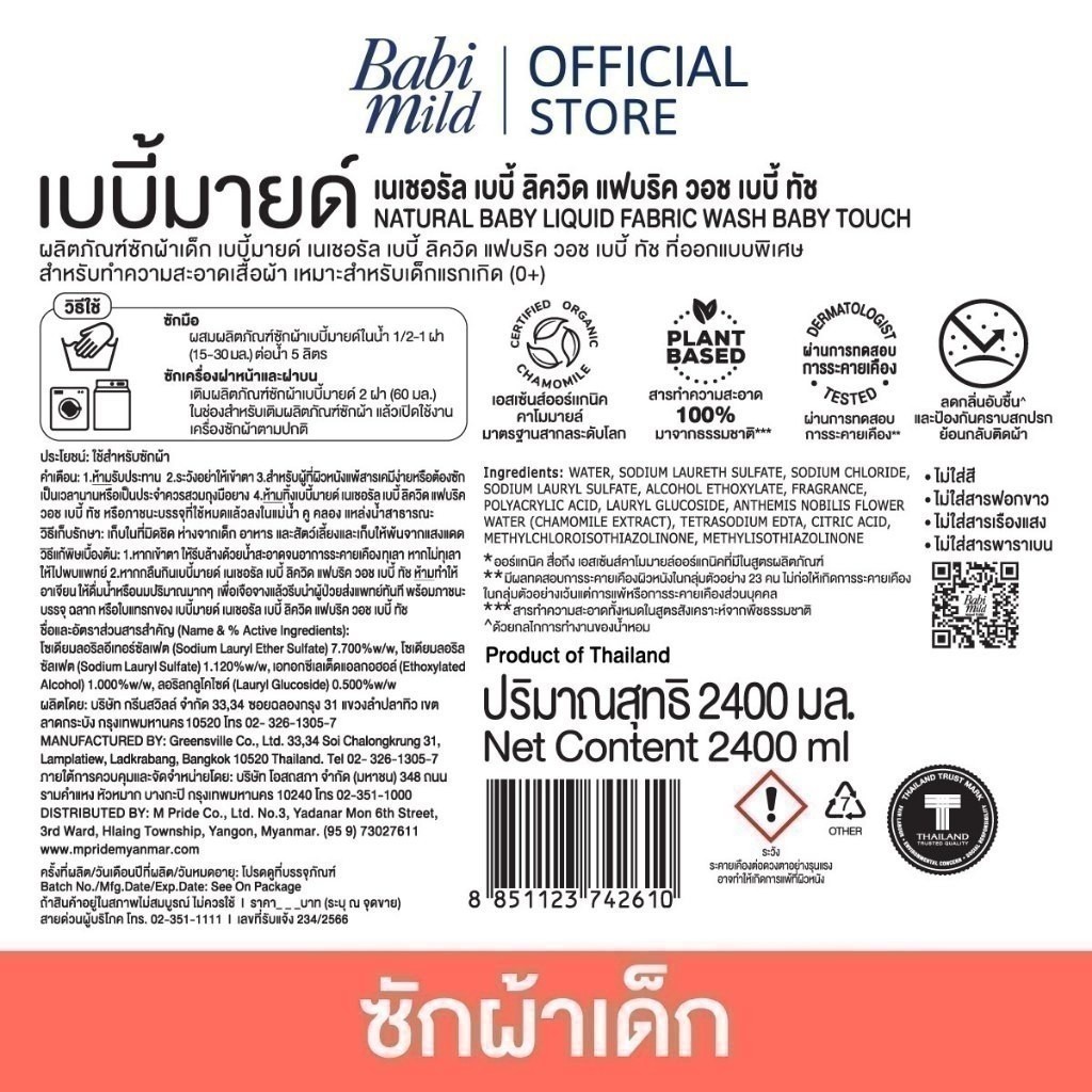 เบบี้มายด์ น้ำยาซักผ้าเด็ก เบบี้ ทัช 2,400 มล. x4 / Babi Mild Fabric Wash Baby Touch 2,400 ml. x4