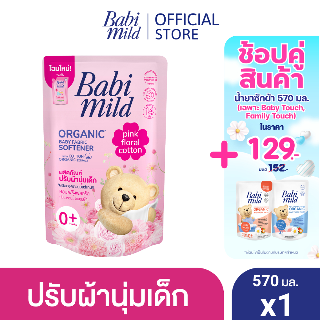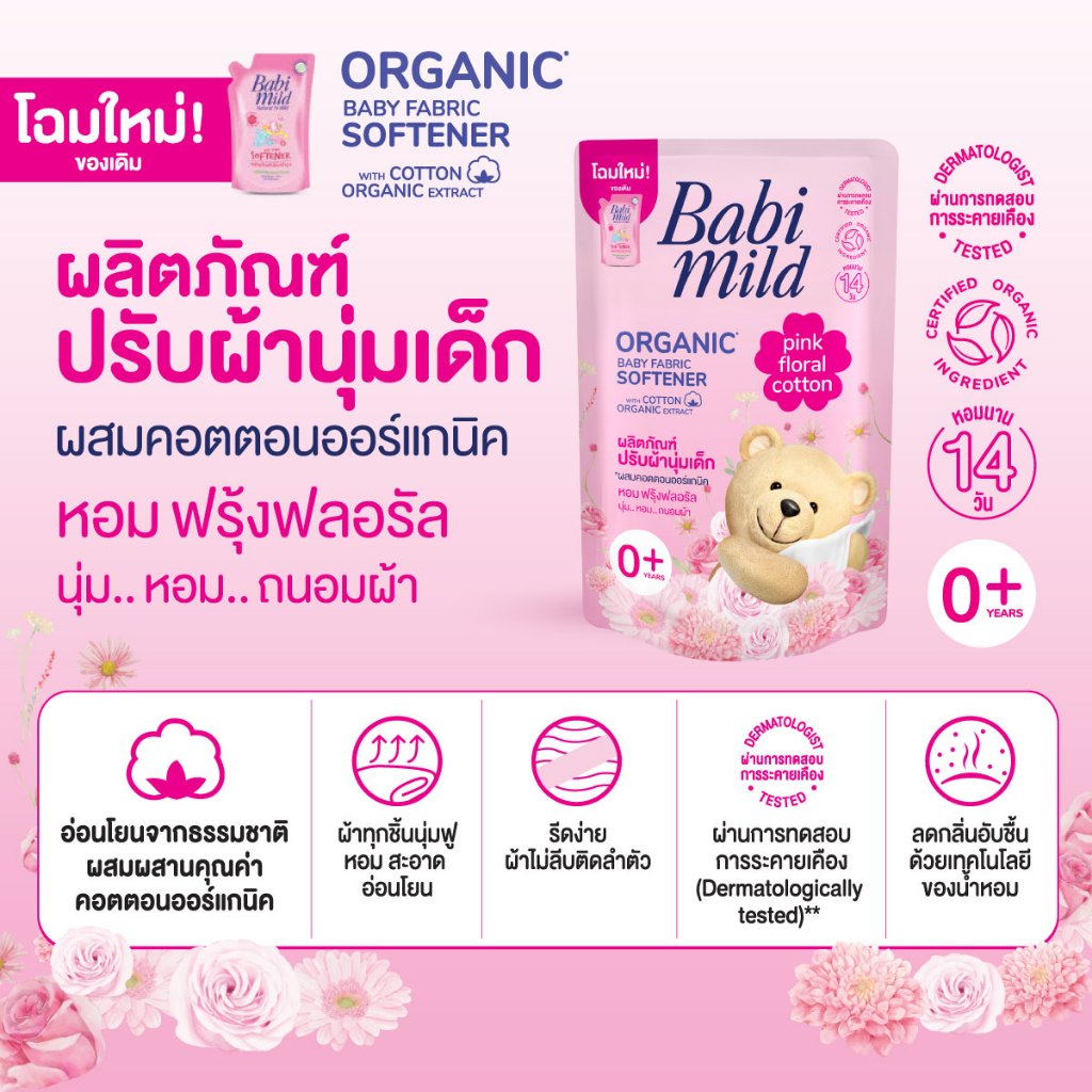 เบบี้มายด์ น้ำยาปรับผ้านุ่มเด็ก พิงค์ ฟลอรัล ถุงเติม 570 มล/ Babi Mild Fabric Softener Pink Floral Refill 570ml