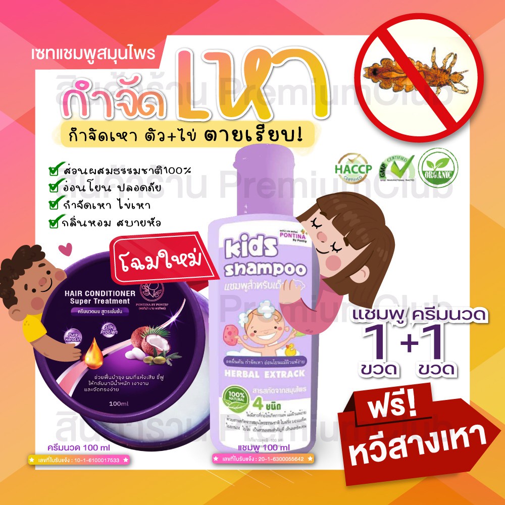 เซทกำจัดเหา (แชมพู1+ครีมนวด1) สำหรับเด็ก สูตรอ่อนโยน กำจัดเหา ไข่เหา กลิ่นหอม เหาตายหลุดยกรัง แถมฟรีหวีสางเหา