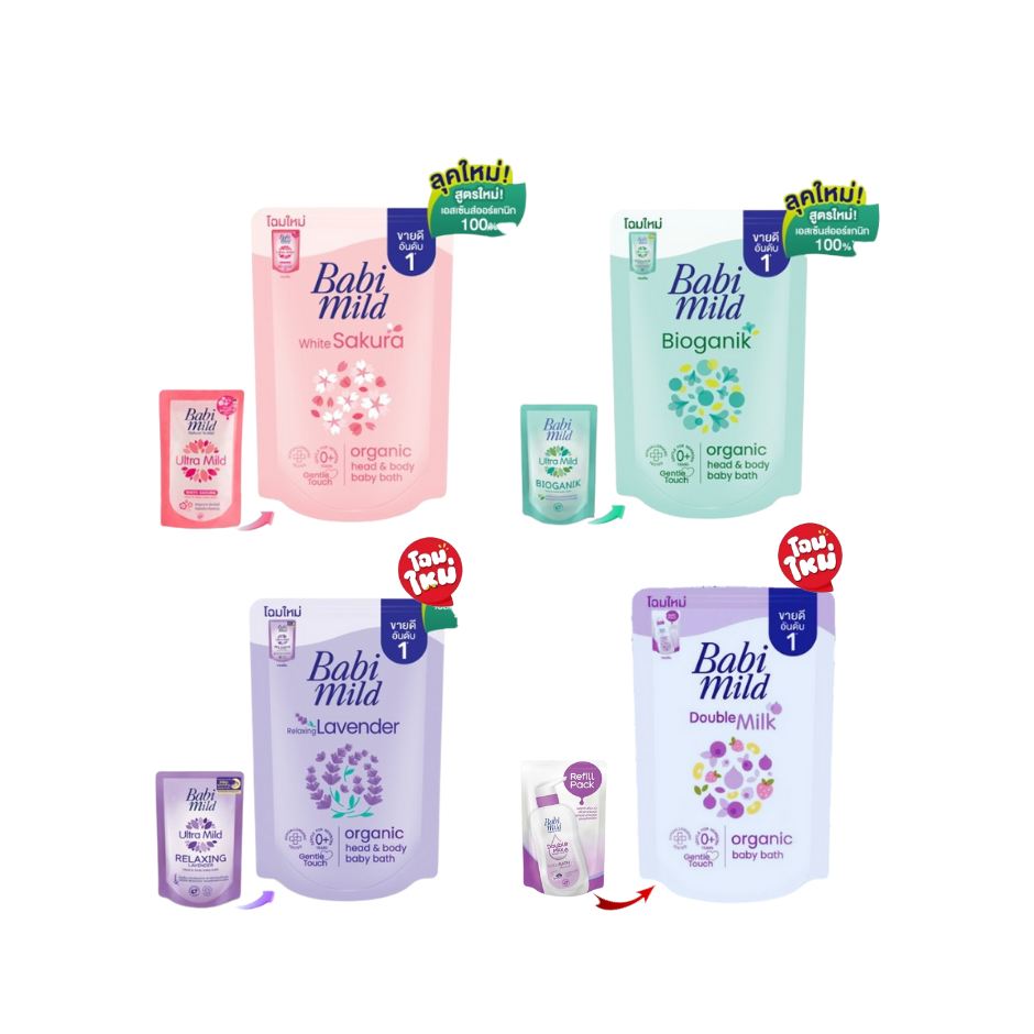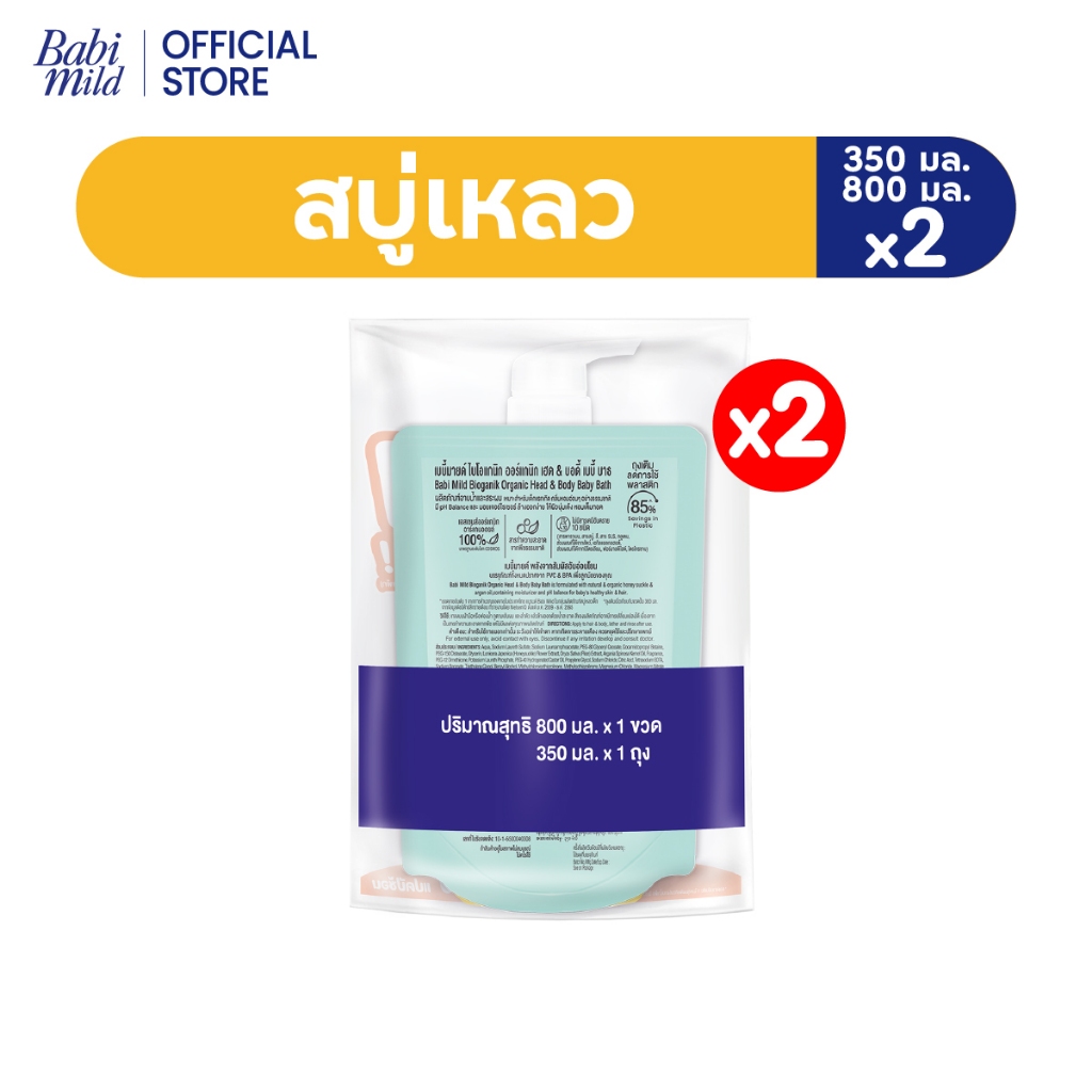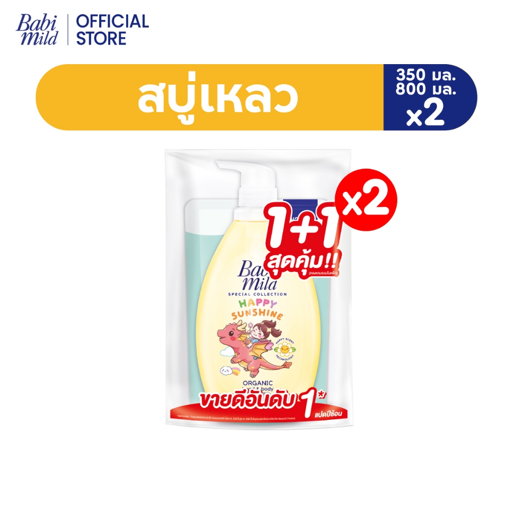 เบบี้มายด์ สบู่เหลวอาบและสระ แฮปปี้ ซันชายน์ 800 มล+รีฟิล ไบโอแกนิก350 มล x2 / Babi Mild Bath Happy Sunshine 800 ml