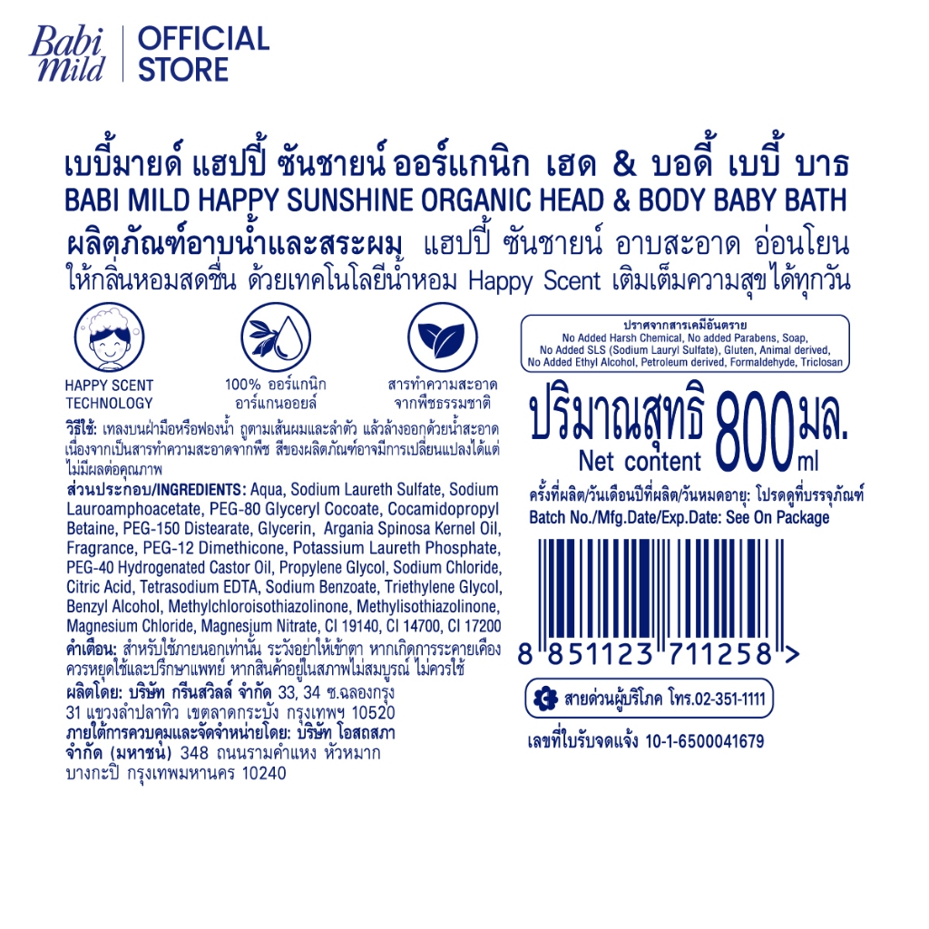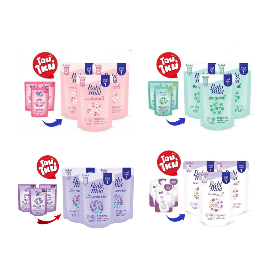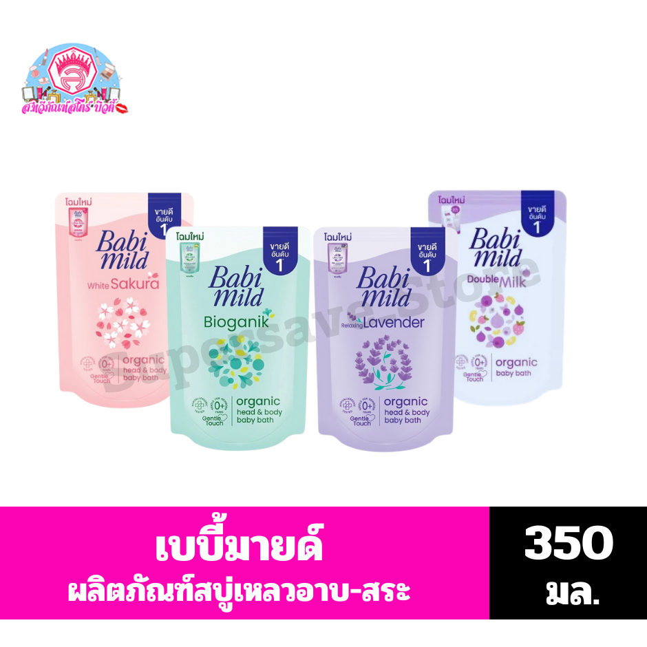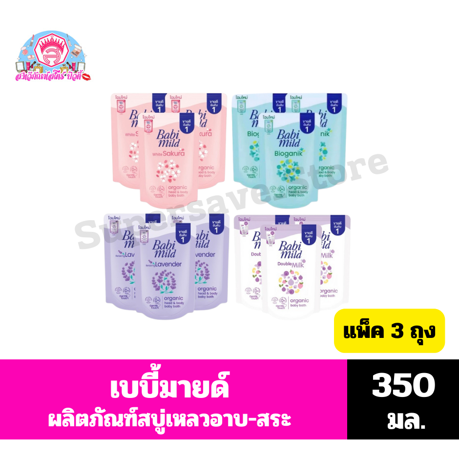 เบบี้มายด์ สบู่เหลวอาบและสระ แฮปปี้ ซันชายน์ 800 มล+รีฟิล ไบโอแกนิก350 มล x2 / Babi Mild Bath Happy Sunshine 800 ml