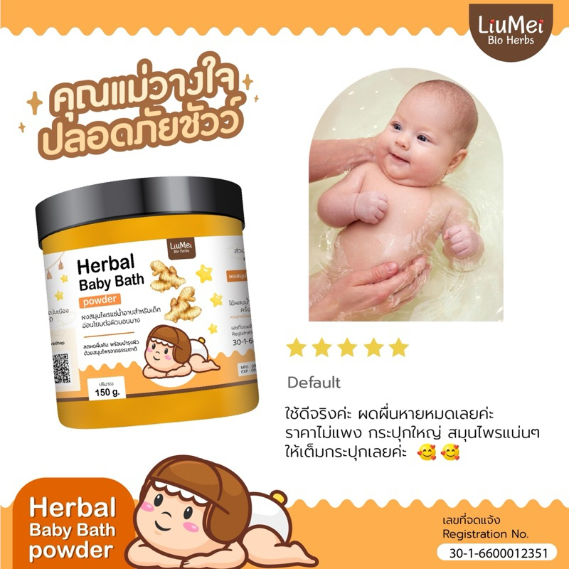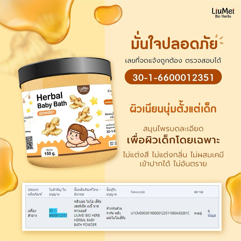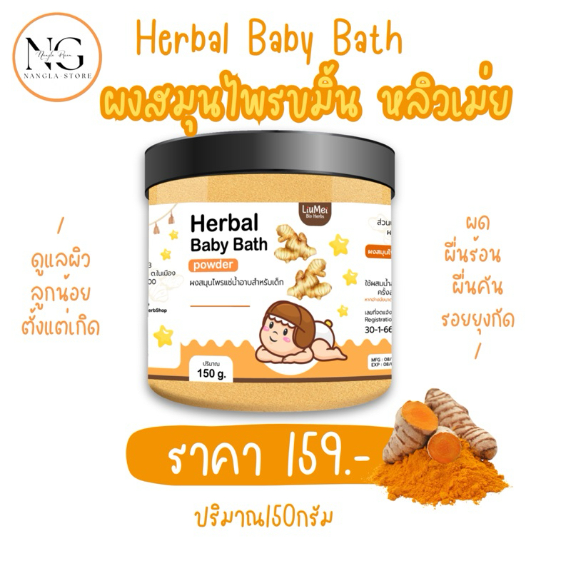 ผงขมิ้นเด็กหลิวเม่ย เบบี้บาธ 150กรัม ผงขมิ้นอาบน้ำเด็ก สมุนไพรอาบน้ำเด็ก ผงสมุนไพรขมิ้น