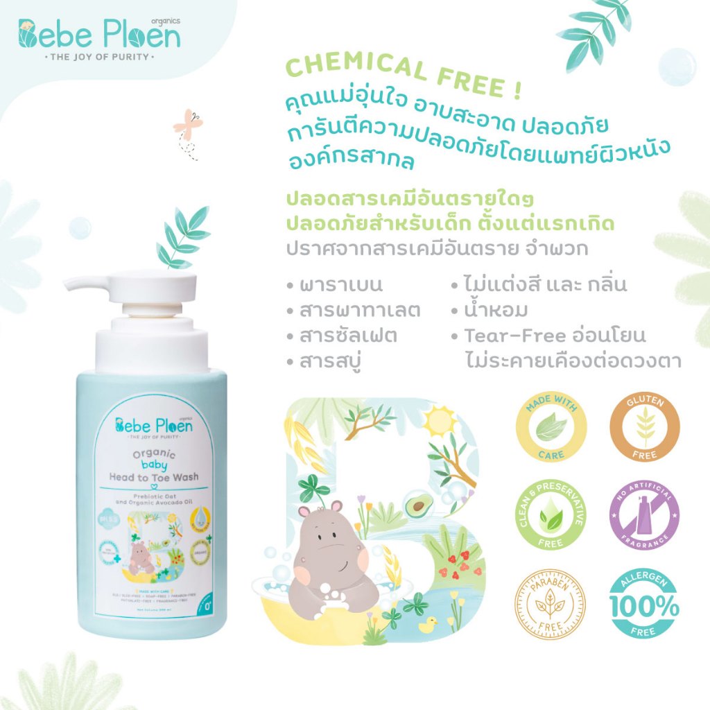 เจลอาบน้ำสระผม 2 in 1 สูตร Tear Free เบเบ้ เพลิน ออร์เเกนิค(Organic Head to Toe wash)