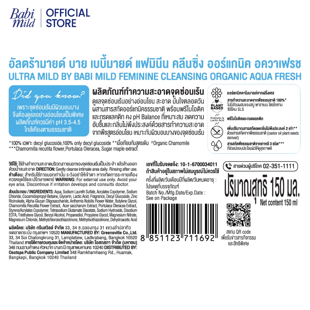 อัลตร้ามายด์ บาย เบบี้มายด์ ออร์แกนิค ผลิตภัณฑ์ทำความสะอาดจุดซ่อนเร้นกลิ่นอควาเฟรช 150 มล./Feminine Wash Aqua 150ml