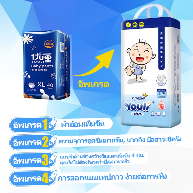 【จัดส่งจากกรุงเทพ】แพมเพิส Premium YOULI Baby Pants ผ้าอ้อมเด็กสําเร็จรูป แพมเพิสเด็ก