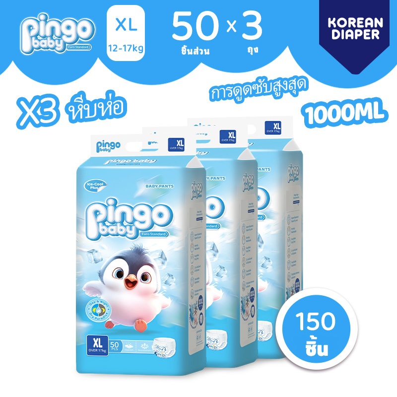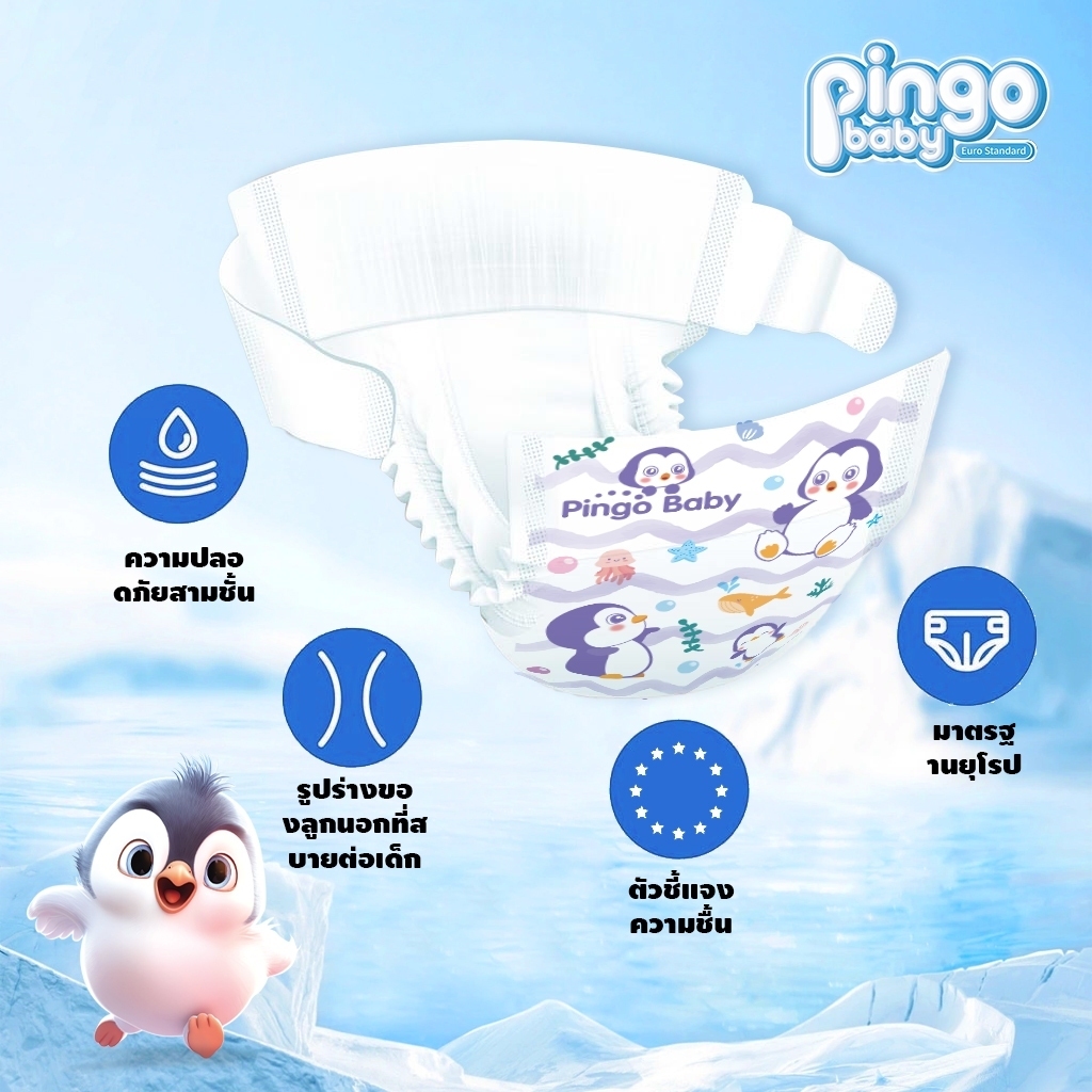 150ชิ้น แพมเพิสเด็ก Pingo Baby ผ้าอ้อม กางเกง นุ่ม บางเบา เทป เด็ก