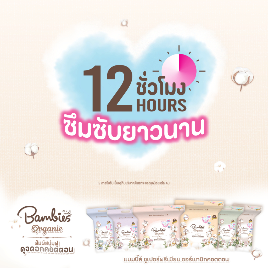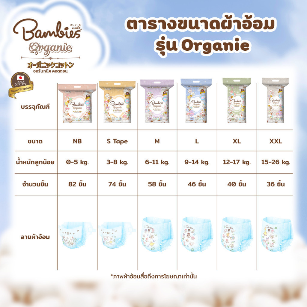 [แพ็คเดี่ยว] BAMBIES ผ้าอ้อมแบบกางเกง Organic ไซส์ M จำนวน 58 ชิ้น รุ่น Organie