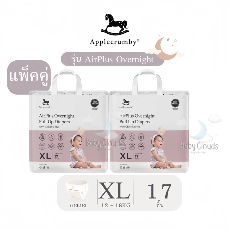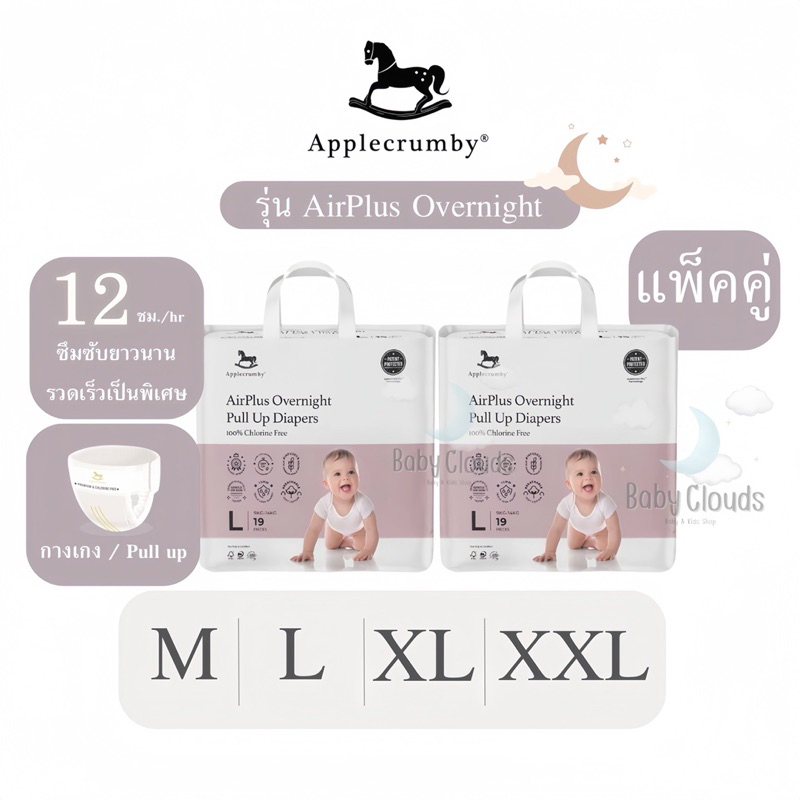 Applecrumby Airplus Overnight Mini Baby diapers ผ้าอ้อมแบบกางเกง (2 แพ็ค/ยกลัง)