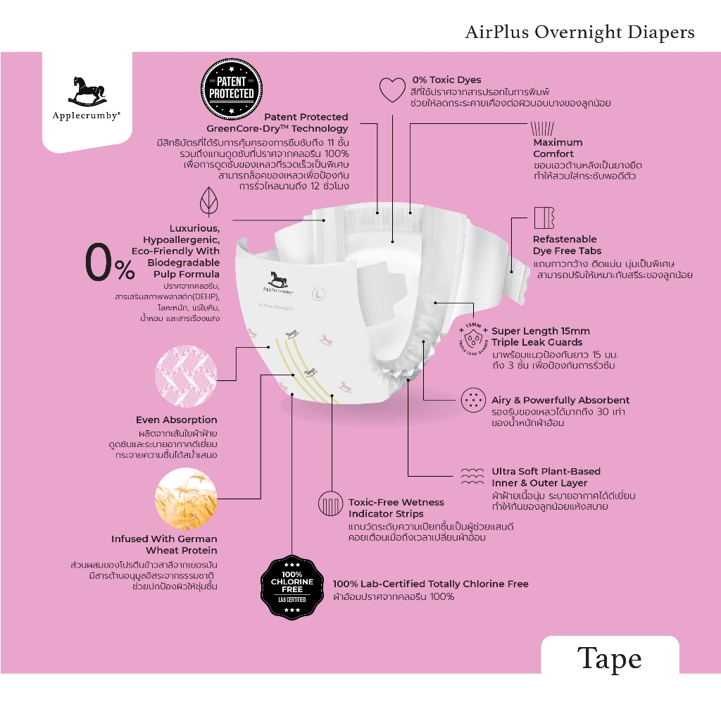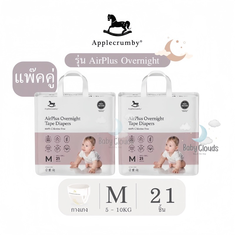 Applecrumby AirPlus Overnights Mini (ผ้าอ้อมกลางคืน) แบบเทป ไซส์ NB ( 20ชิ้น/1แพ็ค )