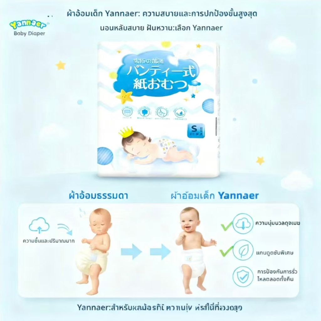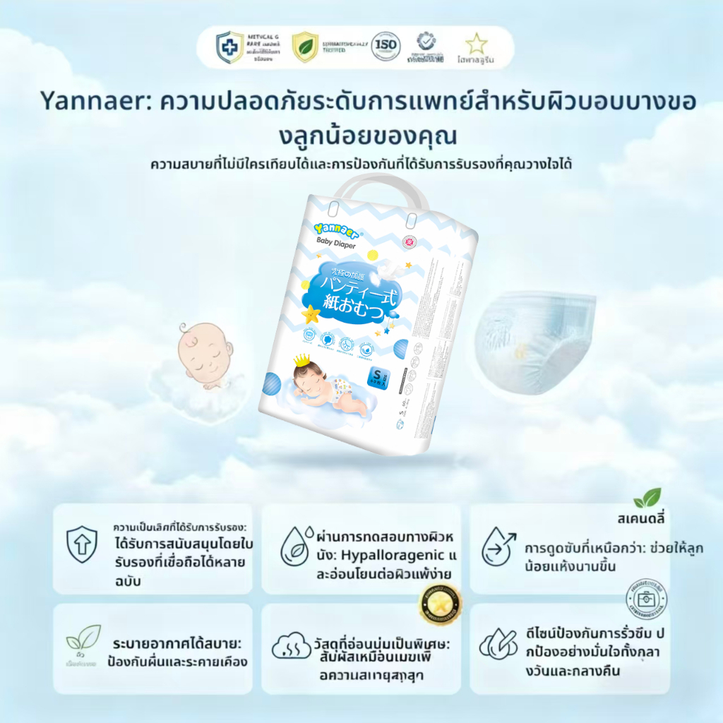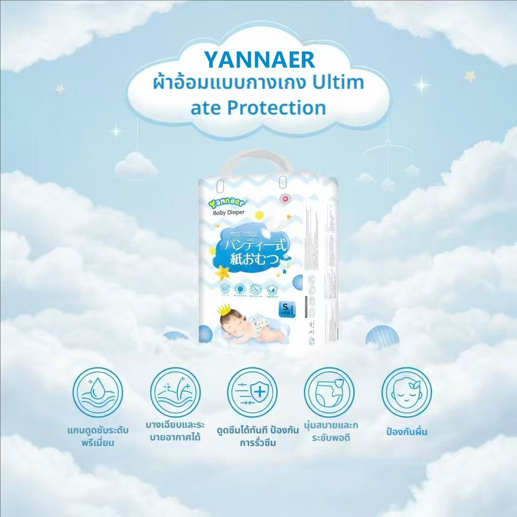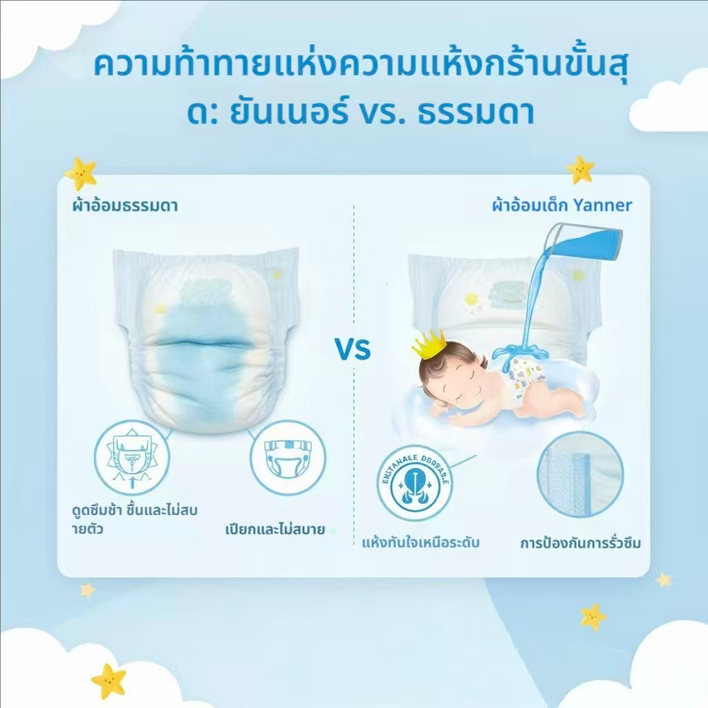 【แจกฟรีนะคะ】Yannaerผ้าอ้อมเด็กเกรดพรีเมียมนำเข้า ผ่านการรับรองมาตรฐานระดับโลก บางเบากว่า นุ่มกว่า และซึมซับได้ดียิ่งกว่า