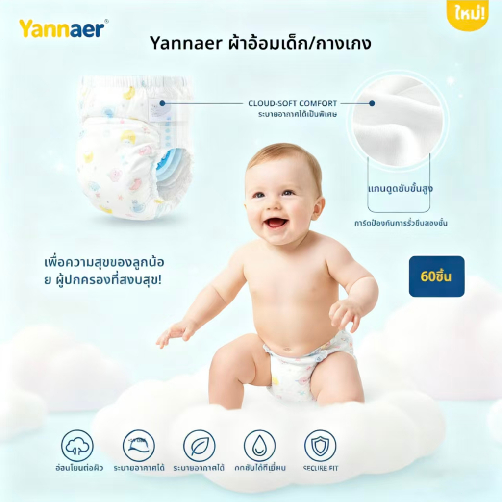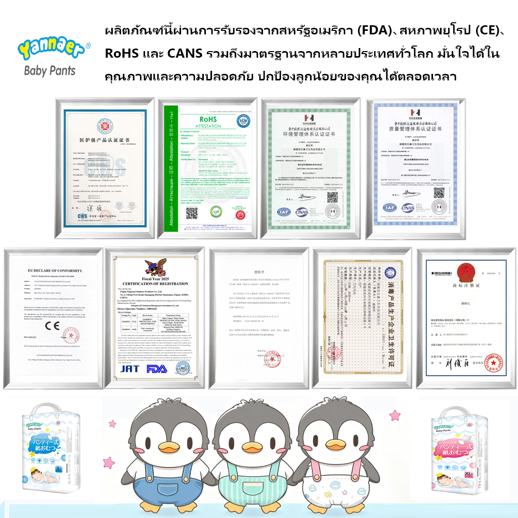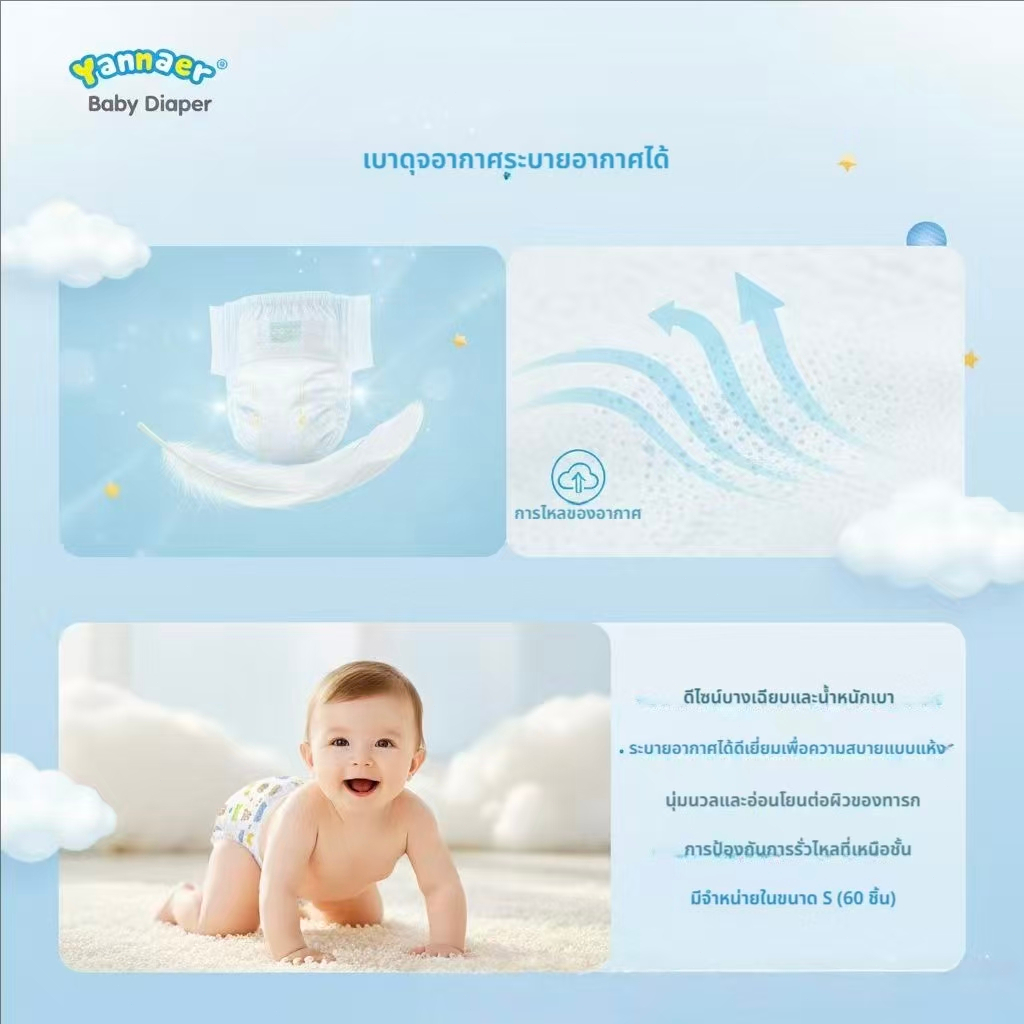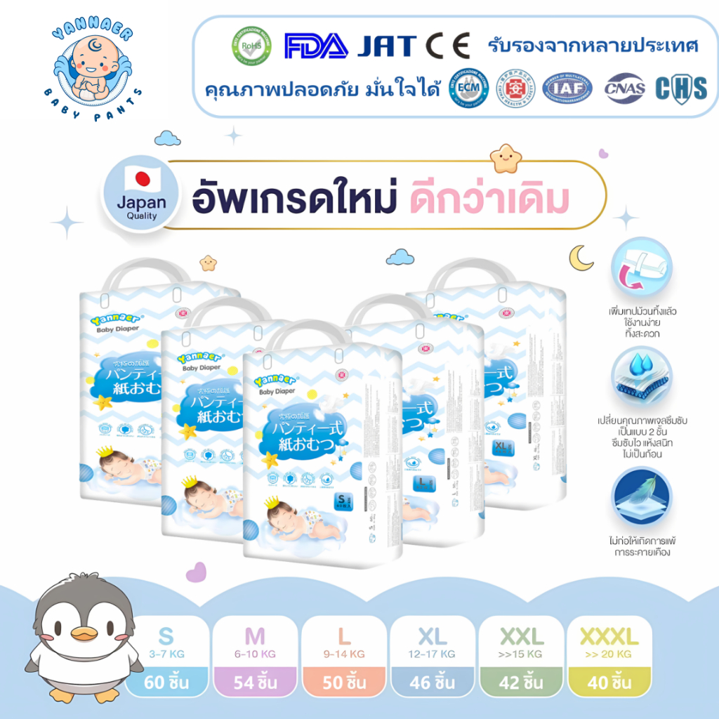 【แจกฟรีนะคะ】Yannaerผ้าอ้อมเด็กเกรดพรีเมียมนำเข้า ผ่านการรับรองมาตรฐานระดับโลก บางเบากว่า นุ่มกว่า และซึมซับได้ดียิ่งกว่า