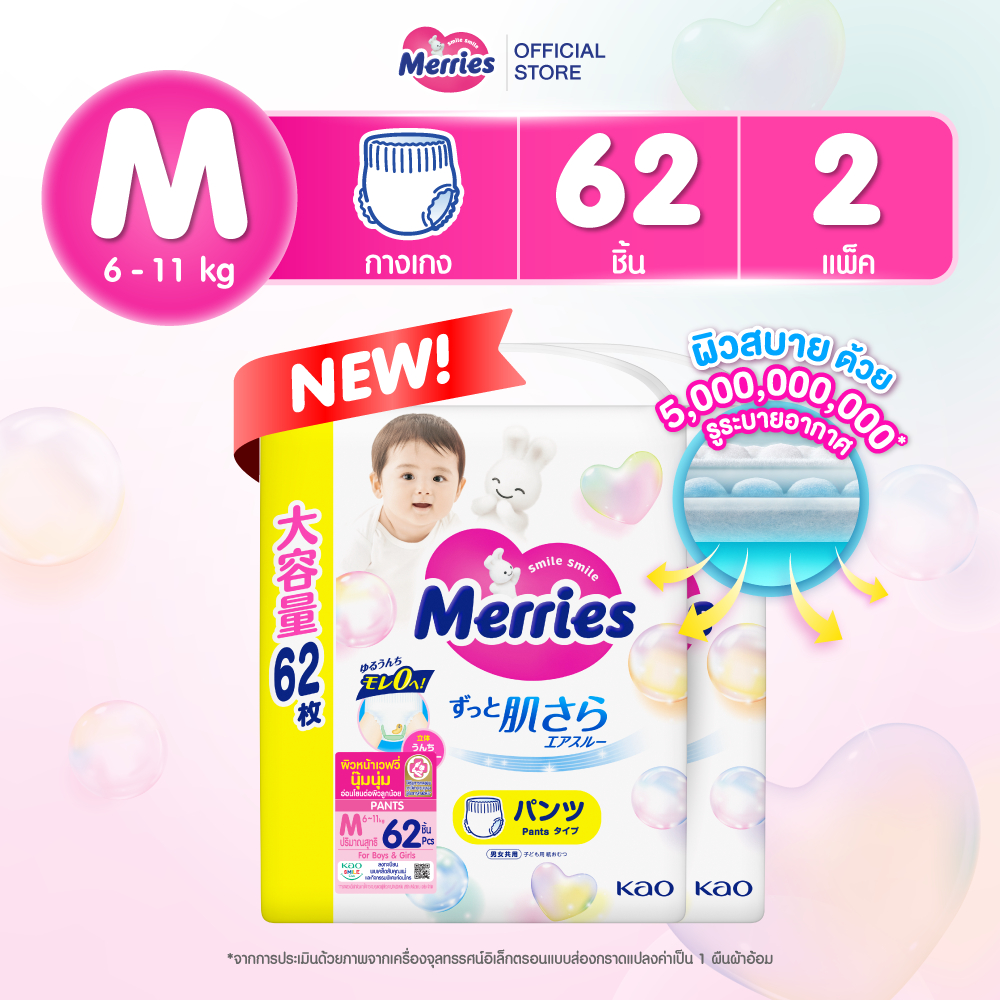 [แพ็ค2] Merries Pants Ultra Jumbo M62 pcs. ผ้าอ้อมเด็กเมอร์รี่ส์ชนิดกางเกง ไซส์ M 62 ชิ้น
