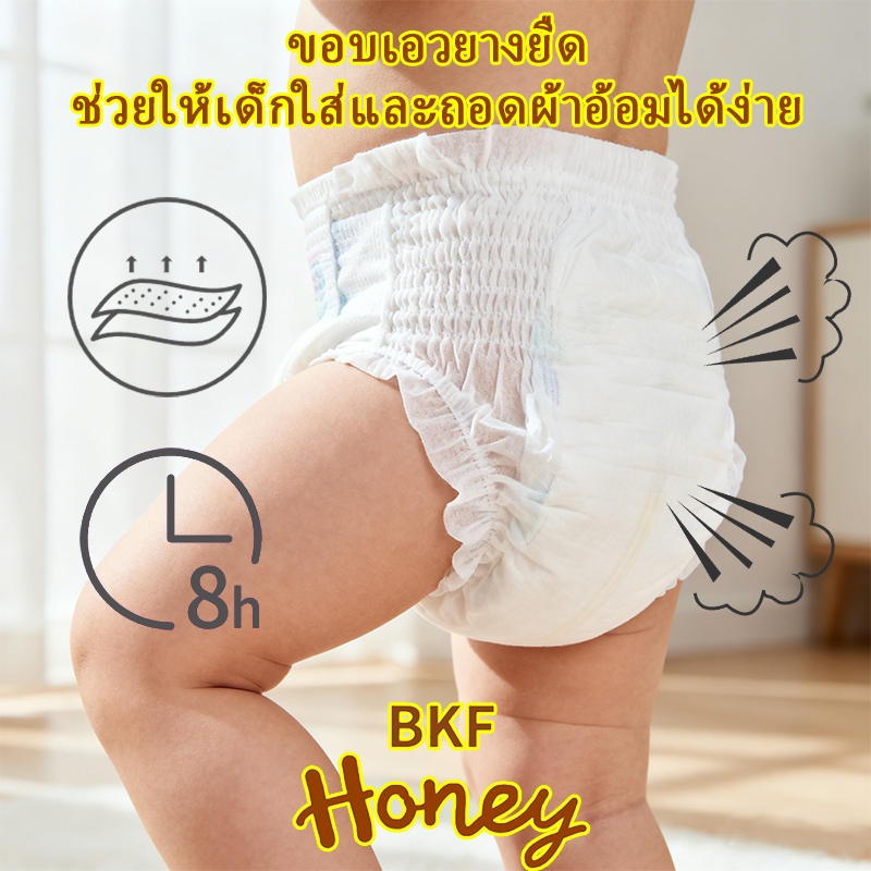 100ชิ้น✨BKF Honey แพมเพิส S-XXXL ผ้าอ้อมเด็กแบบระบายอากาศ baby diaper pants ผ้าอ้อมเด็ก