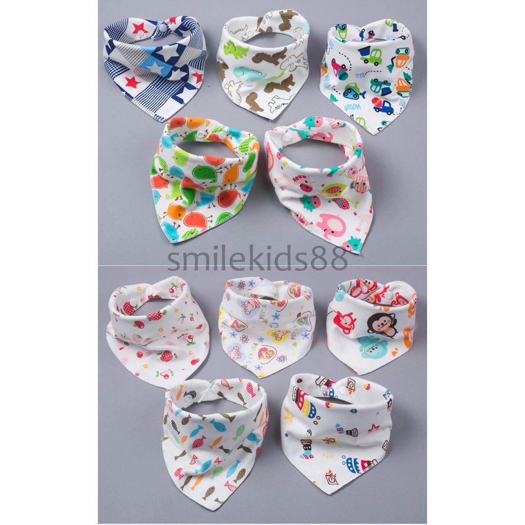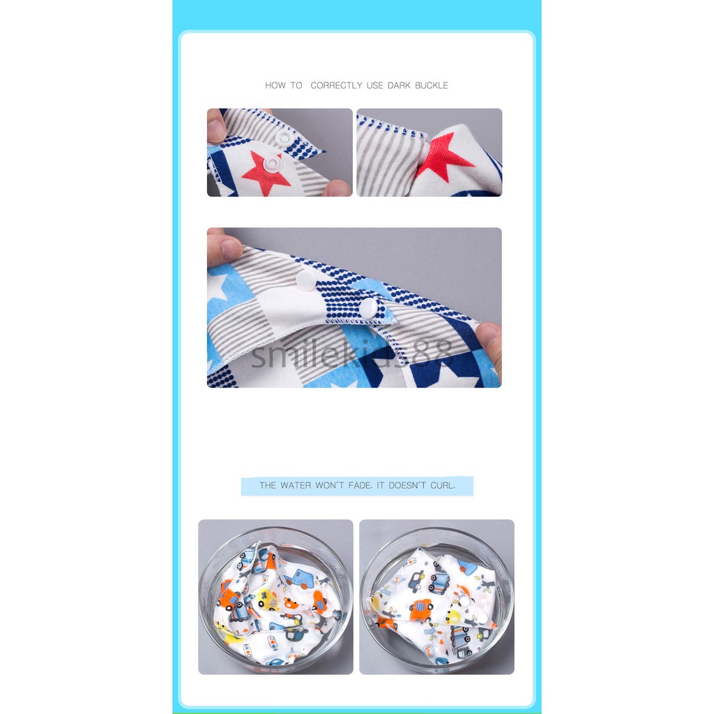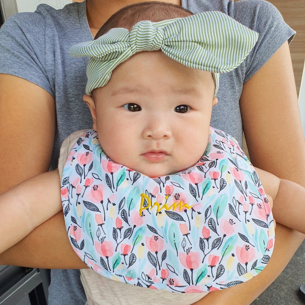 A0041 ผ้าซับน้ำลายสำหรับเด็กแบบรอบคอ ผ้ากันเปื้อนสำหรับเด็ก สไตล์เกาหลี หมุนได้ 360 องศา ลาย 2 ด้าน กระดุมติด 2 เม็ด