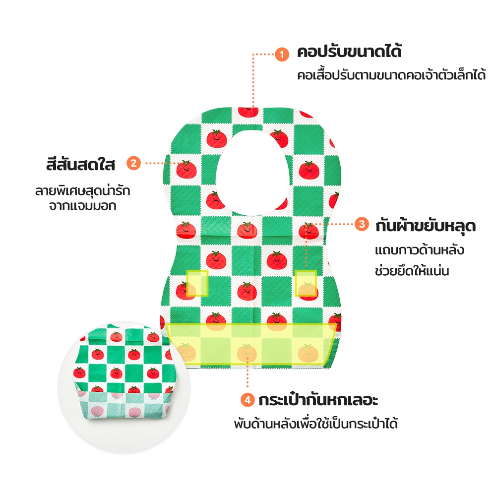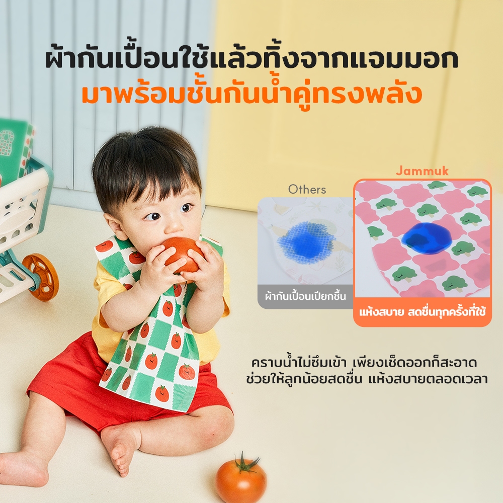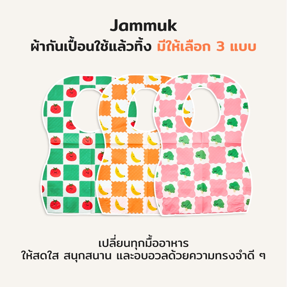 [Malang Honey] JAMMUK ผ้ากันเปื้อนเด็กแบบใช้แล้วทิ้ง กันน้ำ 2 ชั้น น้ำหนักเบา ไม่เก็บฝุ่น พกพาสะดวก กระเป๋ากันเลอะ ถูกสุขลักษณะ 3 ลายน่ารัก (20 ชิ้น)