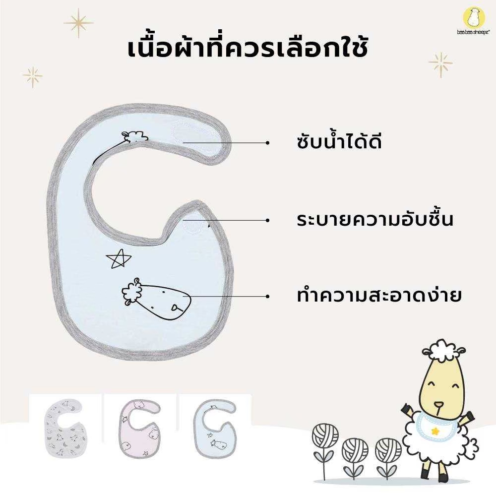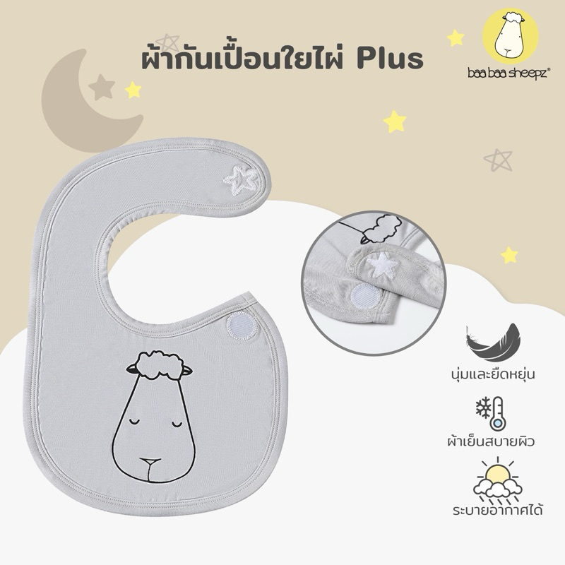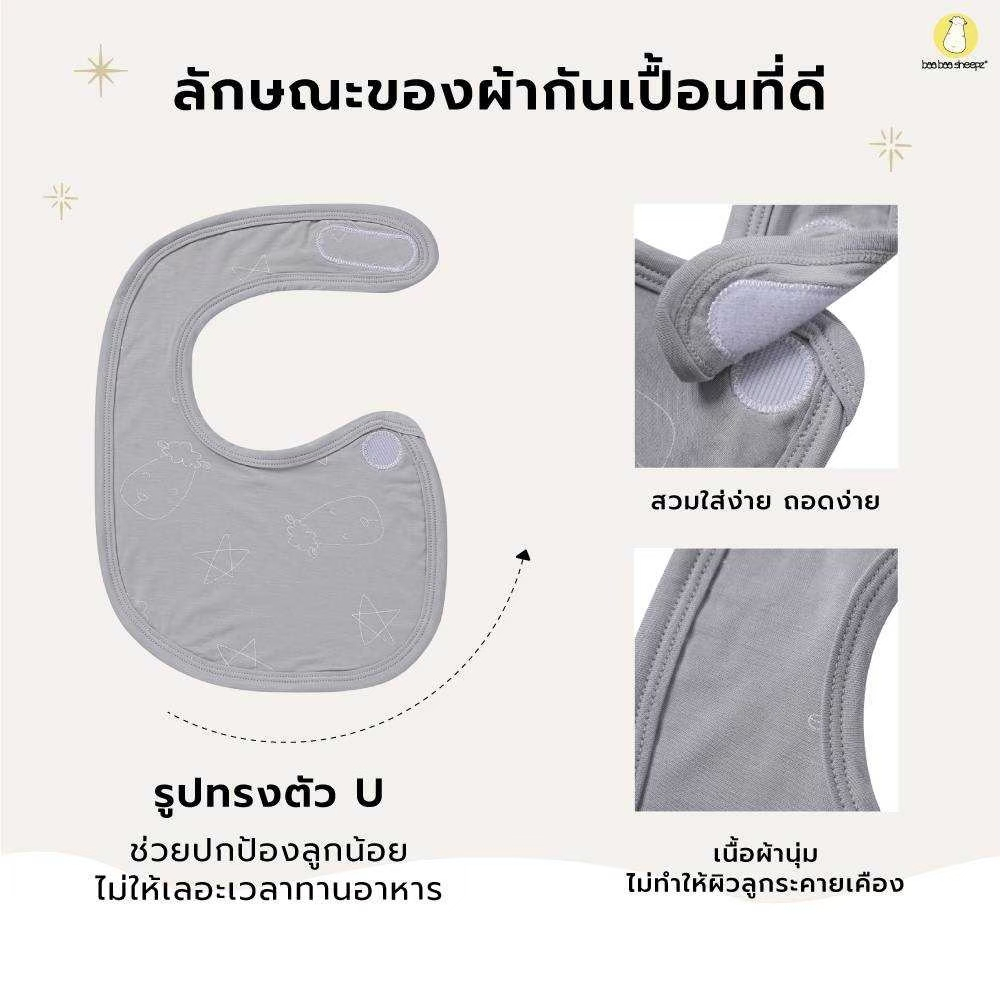 baa baa sheepz ผ้ากันเปื้อนสำหรับเด็กแรกเกิด BIB ผ้าใย่ไผ่Plus นุ่มสบายที่สุด ลาย Goodnight baa baa สีเทา size 0-6เดือน
