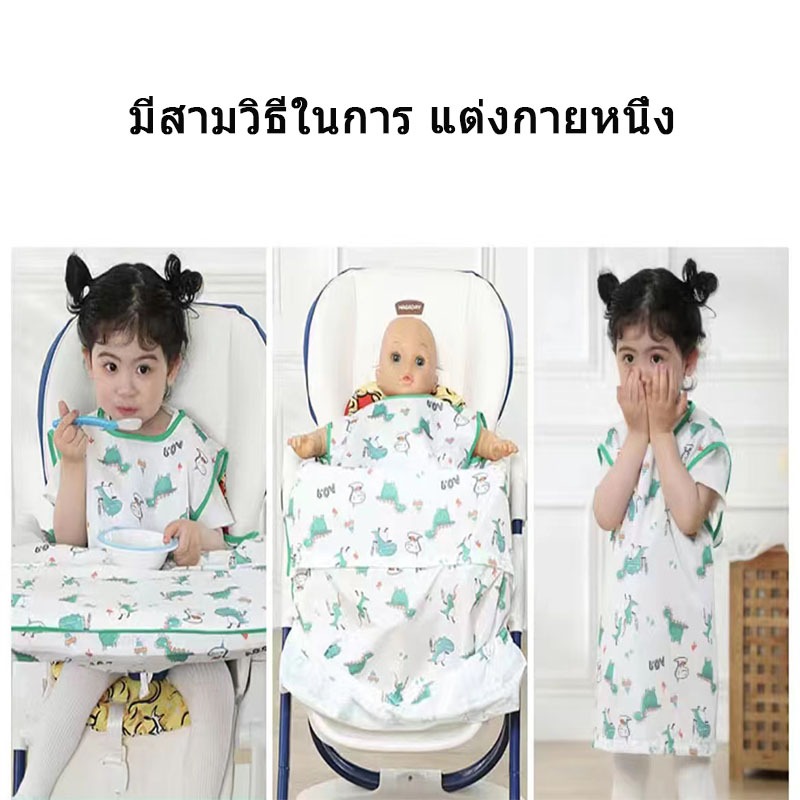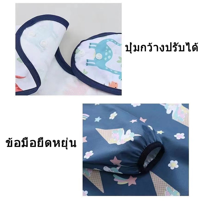 (B012) เสื้อกันเปื้อนเด็ก “แขนสั้น” กันน้ำ กันเลอะอาหาร มีช่องรองอาหาร