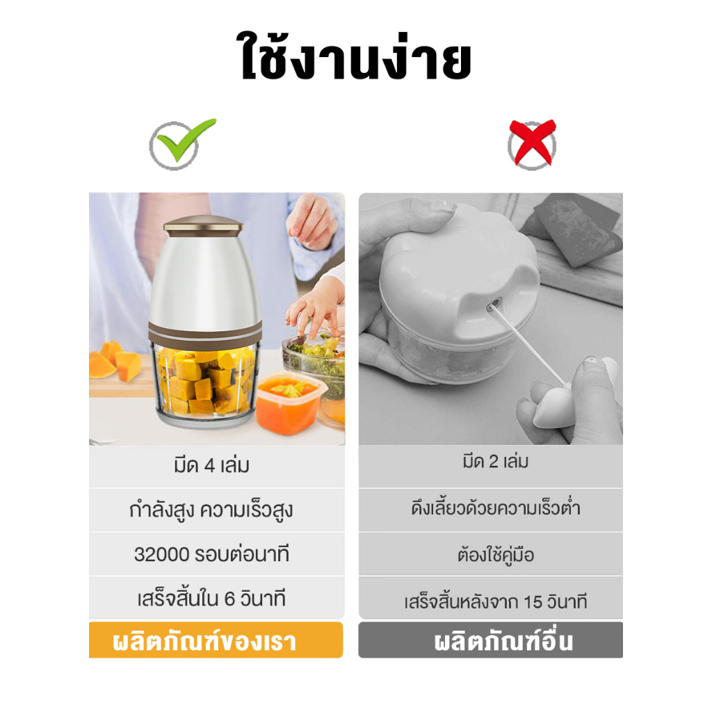 LAKOEMALL ถ้วยบดอาหาร ถ้วยบด บดได้ 360° ที่บดอาหาร ถ้วยบดข้าว สับอาหาร บดอาหารเด็ก