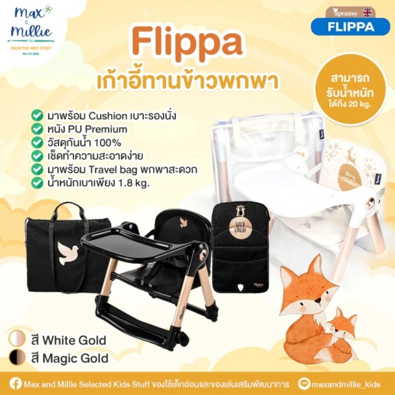 พร้อมส่ง Apramo Flippa Rockstar White Radiance เก้าอี้ทานข้าวพกพา รุ่น limited ใหม่ล่าสุดจากแบรนด์