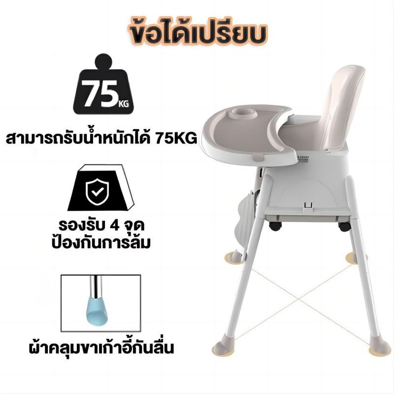เก้าอี้กินข้าวเด็ก เก้าอี้เด็กกินข้าว เก้าอี้กินข้าวเด็กพับได้ เก้าอี้ กิน ข้าว เด็ก 6 เดือนขึ้นไป ปลอดภัยสำหรับเด็ก