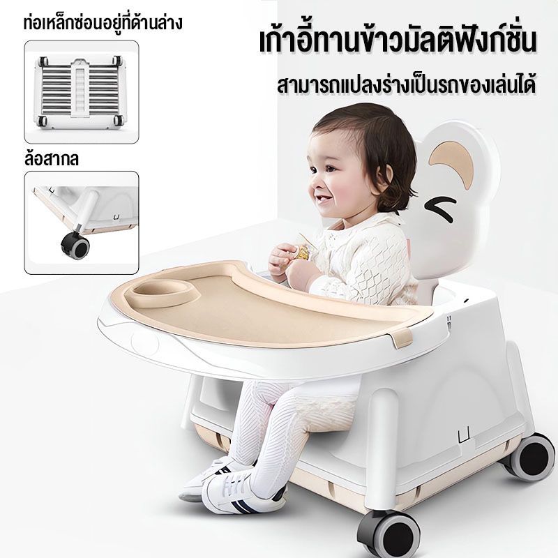 เก้าอี้กินข้าวเด็ก โต๊ะกินข้าวเด็ก โต้ะทานข้าวเด็ก9เดือน พับได้ ปรับเป็นเก้าอี้โยกได้