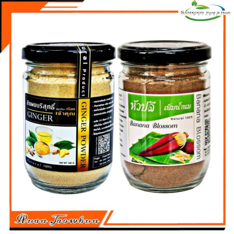 R58 แพ็คคู่เซตเพิ่มน้ำนมสำหรับคุณแม่หลังคลอด ขิงผงเจ้าคุณ 90 G. (Ginger) + หัวปลีผง 90 กรัม (Banana Blossom Powder)