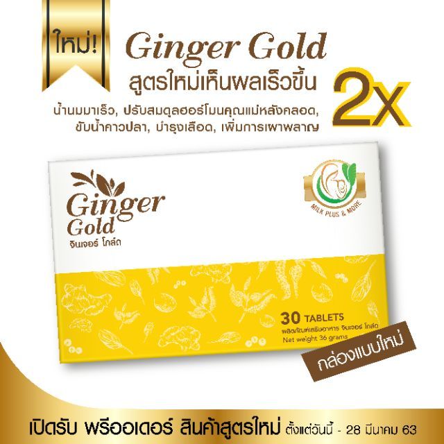 Ginger Gold จินเจอร์โกลด์ วิตามินเพิ่มน้ำนม 1กล่อง 30เม็ด บำรุงน้ำนม มีวิตามินและ DHA